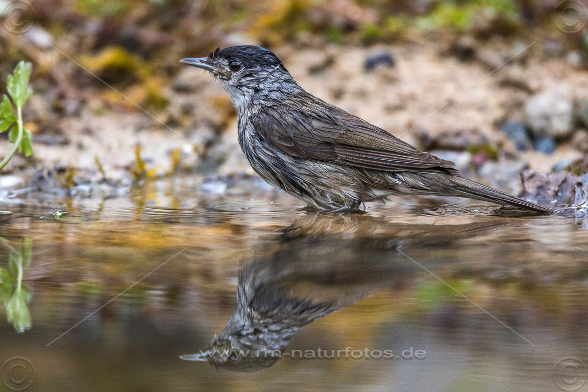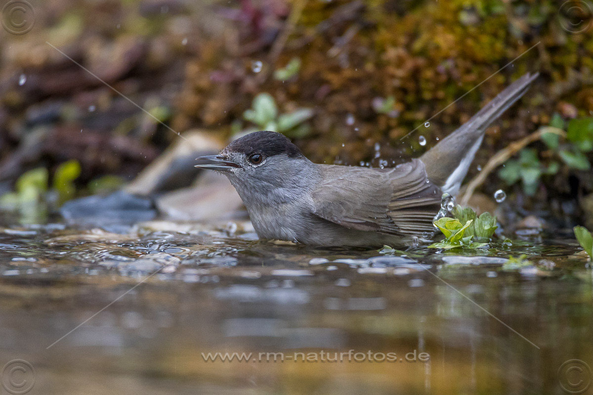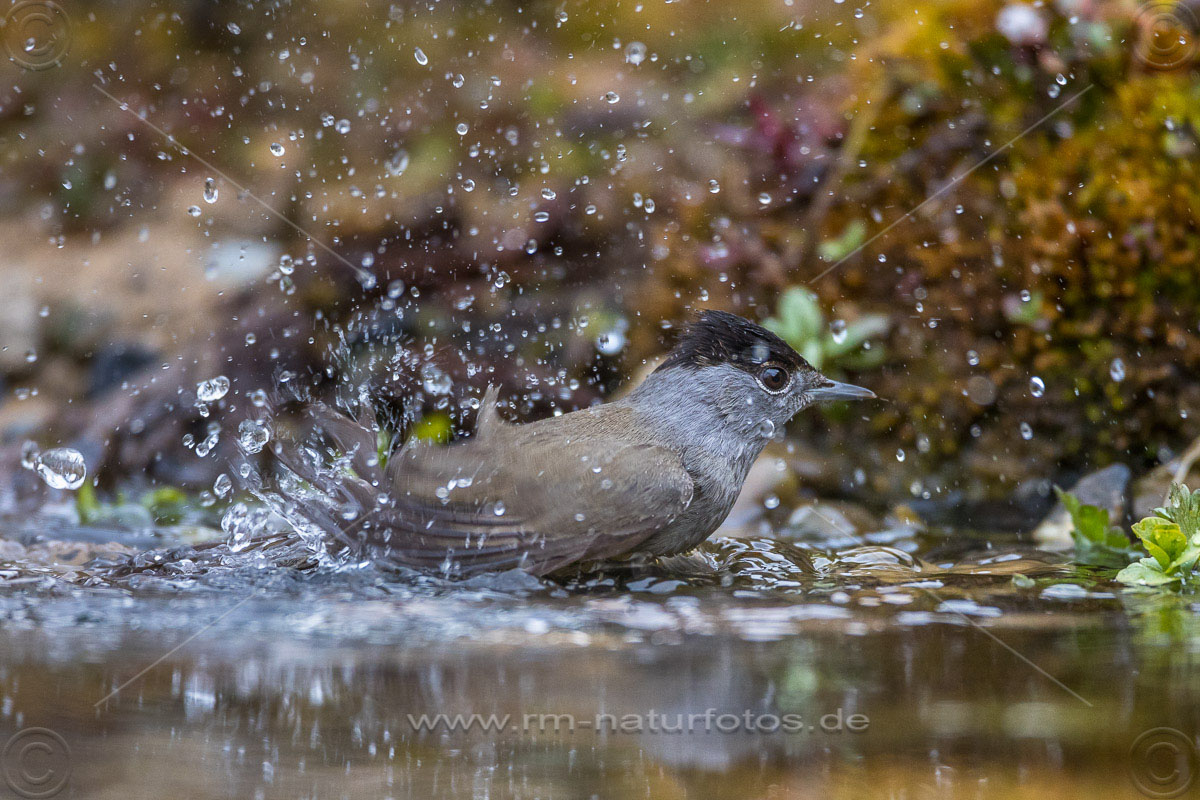 Mönchsgrasmücke (Sylvia atricapilla) Männchen, badend