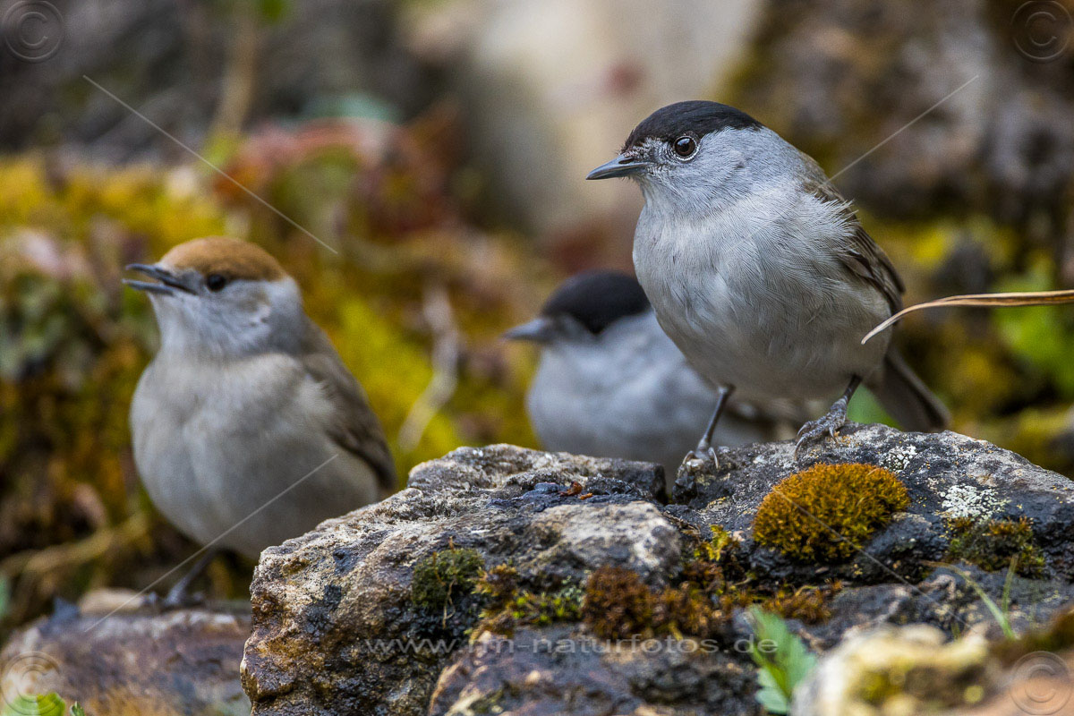 Mönchsgrasmücke (Sylvia atricapilla) Männchen und Weibchen