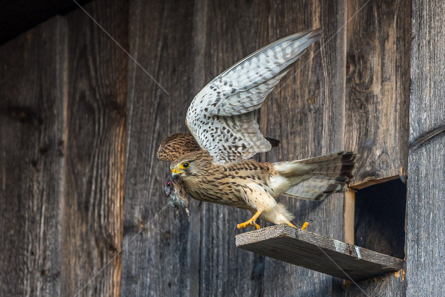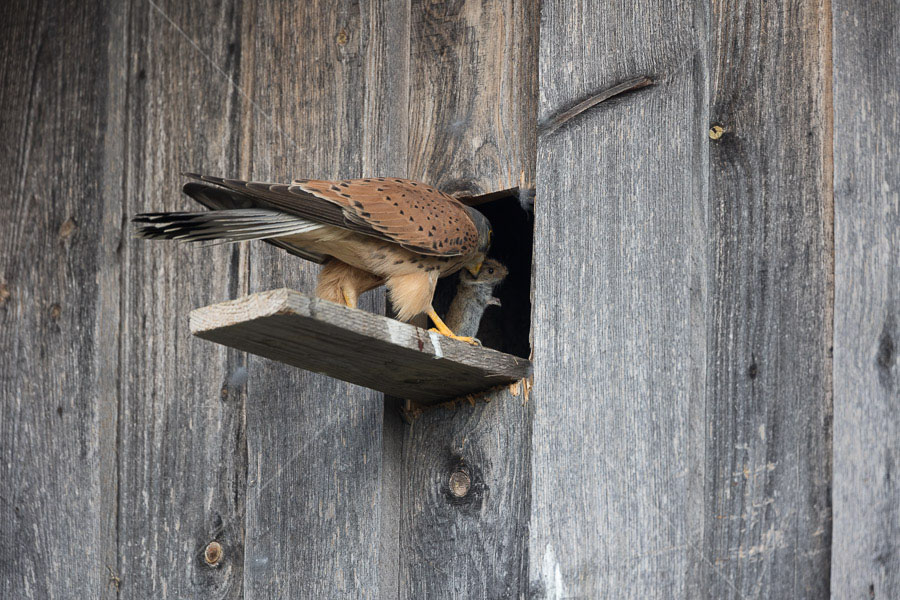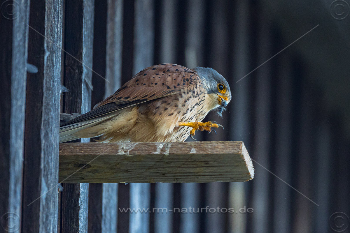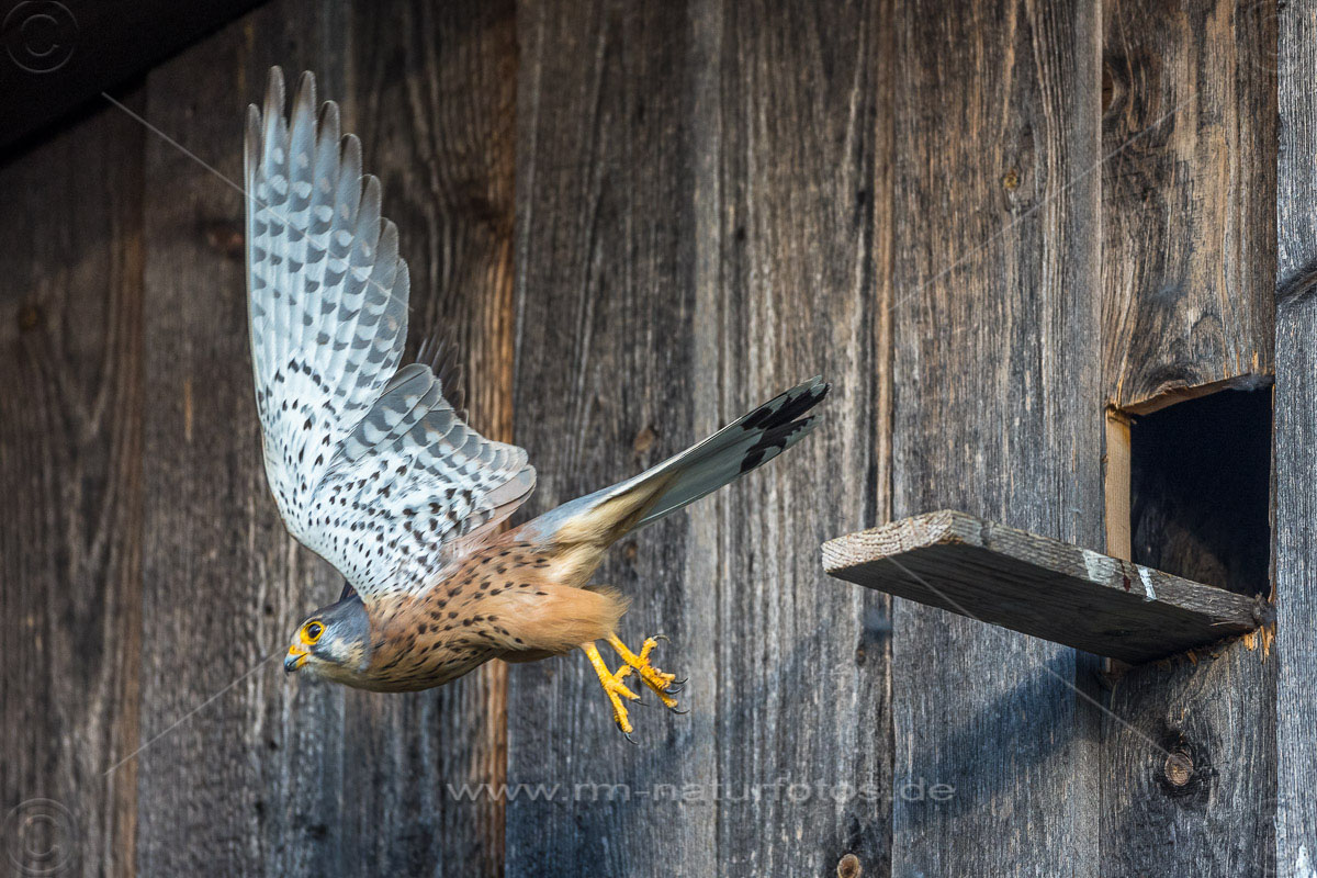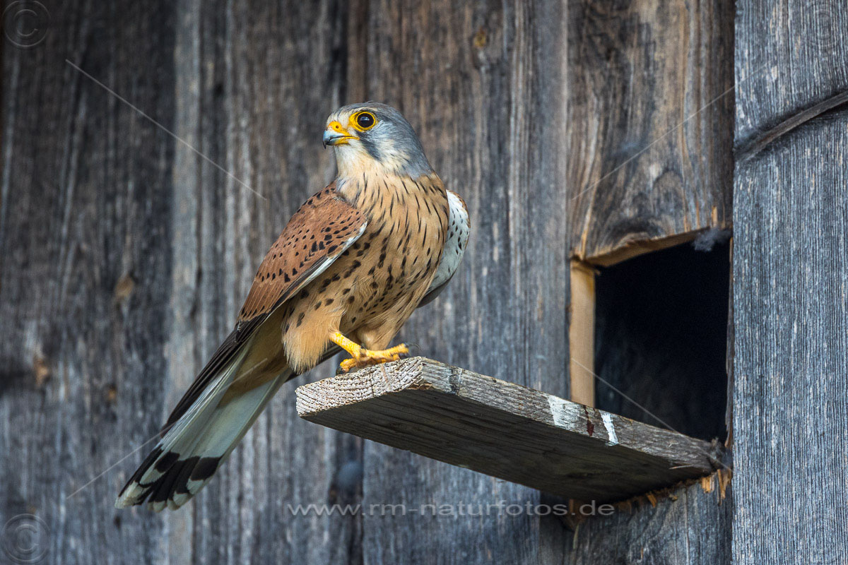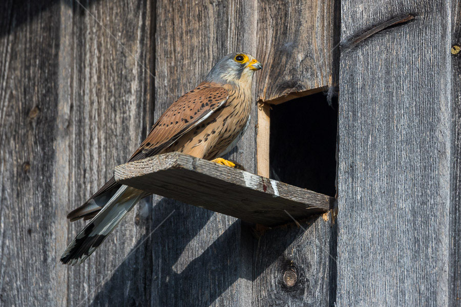 Turmfalke (Falco tinnunculus) Männchen am Nistkasten
