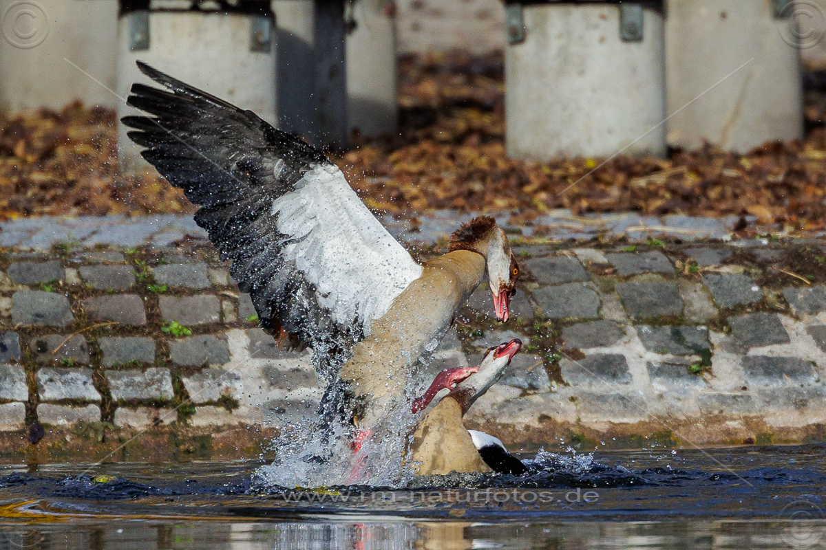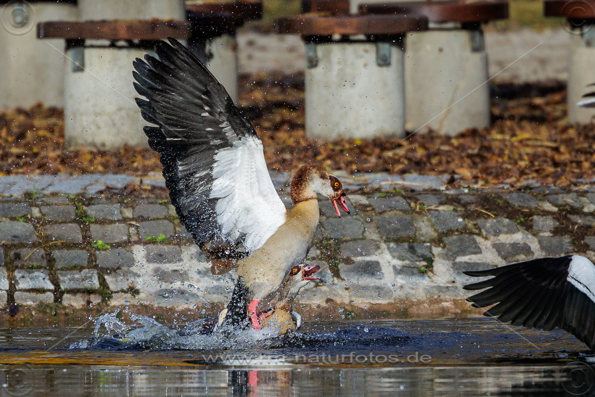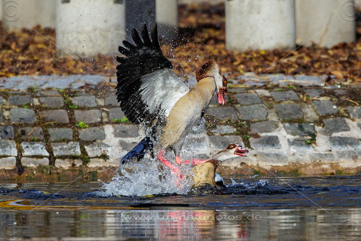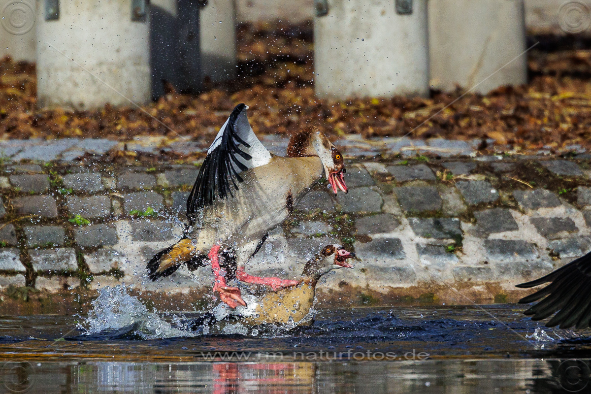 Nilgänse (Alopochen aegyptiacus) streiten sich