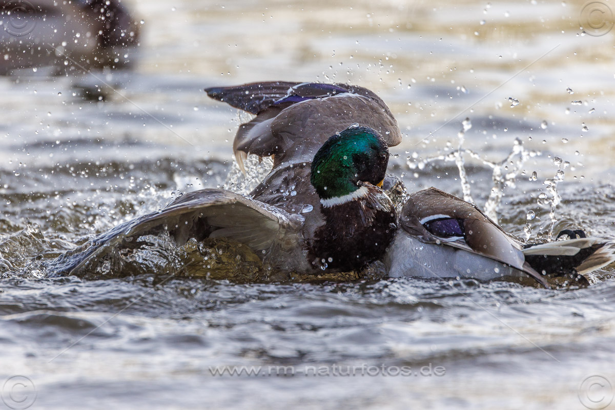 Stockente (Anas platyrhynchos) Männchen streiten sich