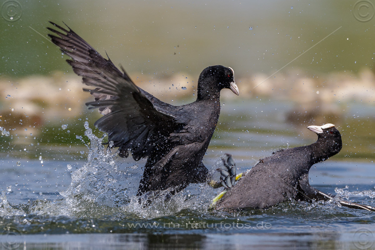 Bläßhühner (Fulica atra) streiten sich