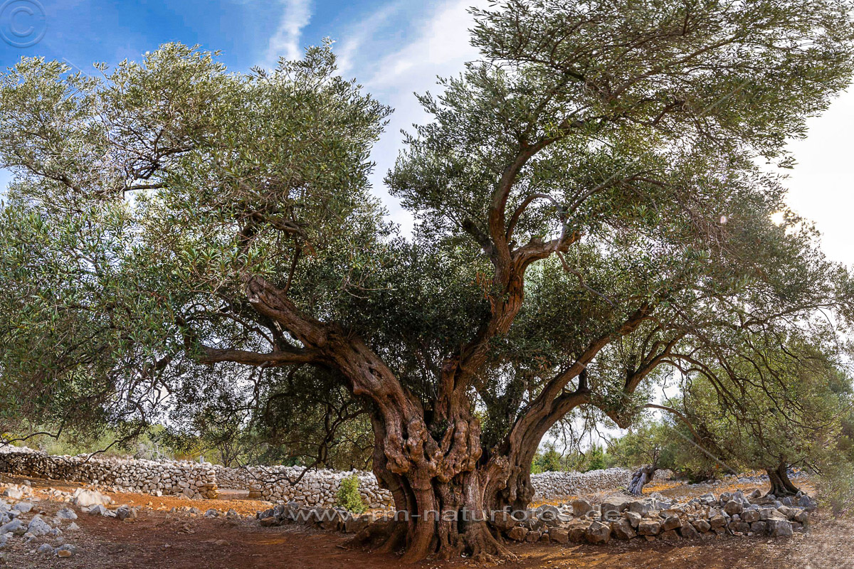 Ältester Olivenbaum in Kroatien auf der Insel Pag bei Lun. Ca. 2000 Jahre alt