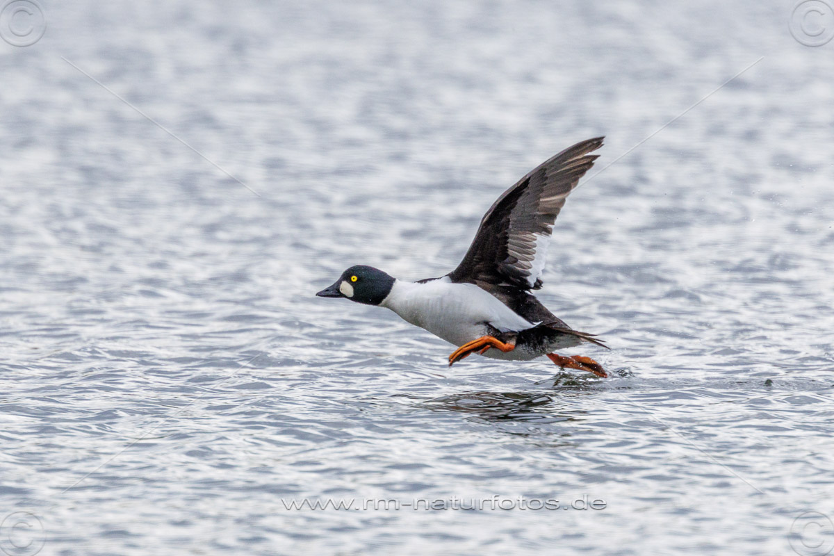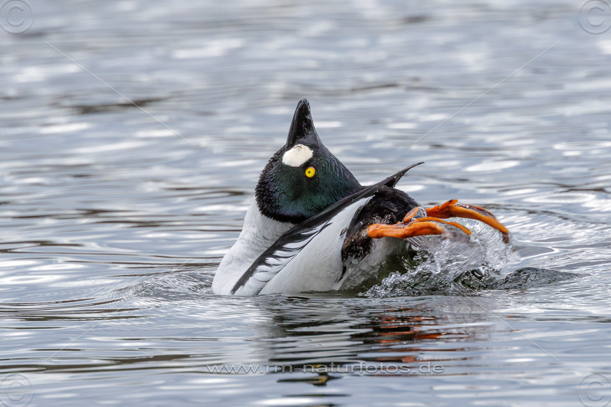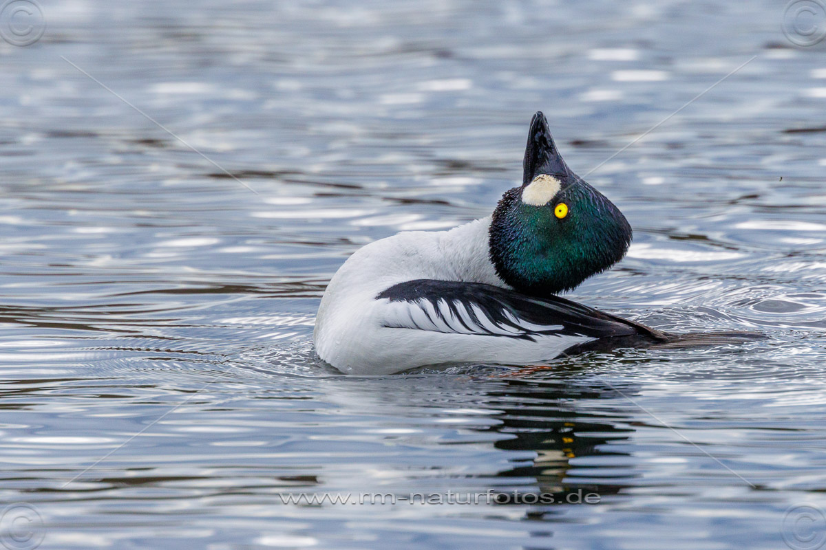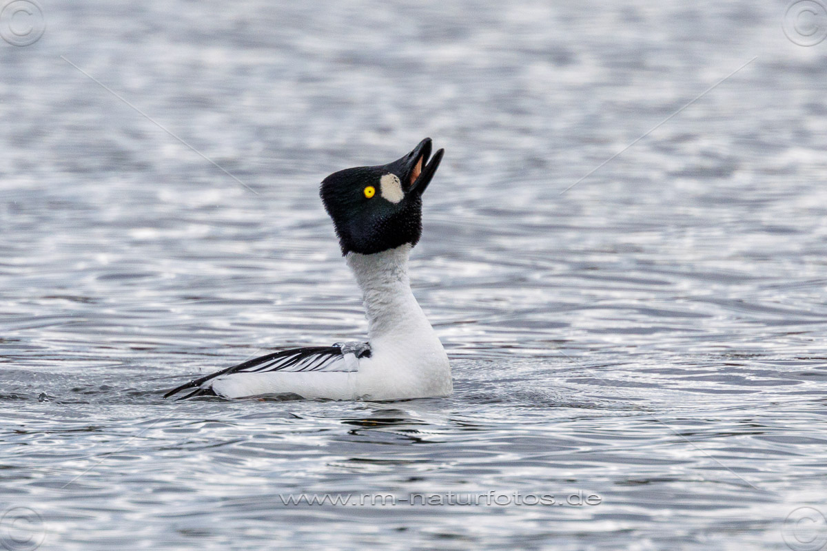 Schellente (Bucephala clangula) Männchen, balzend