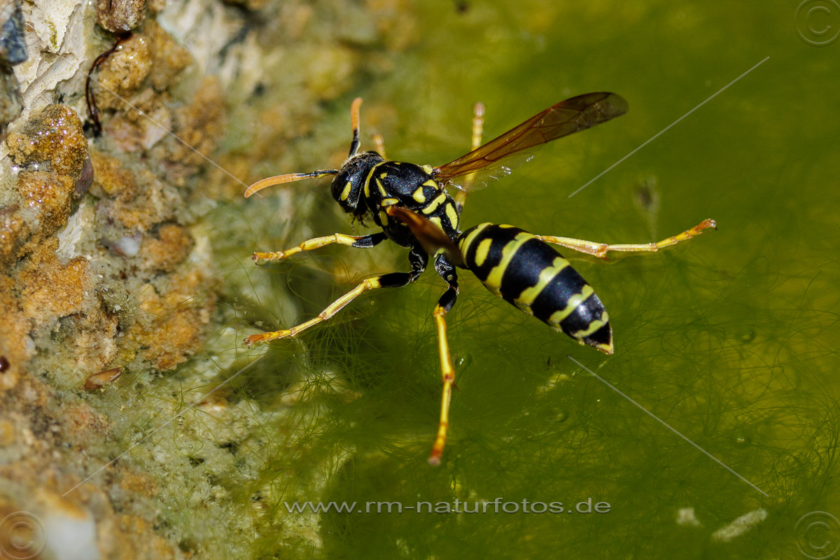 Haus-Feldwespe (Polistes dominula) oder Gallische Feldwespe holt Wasser