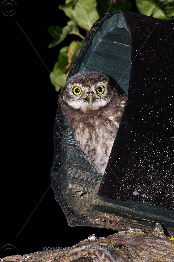 Junger Steinkauz (Athene noctua) im Nistkasten