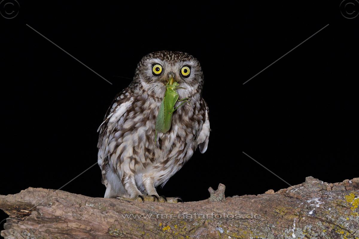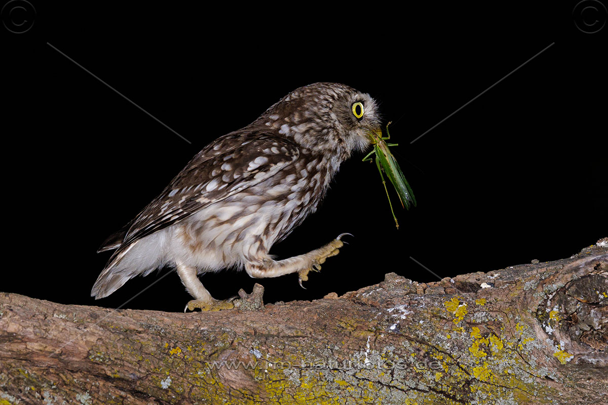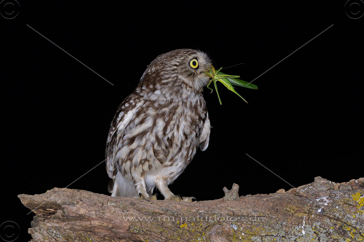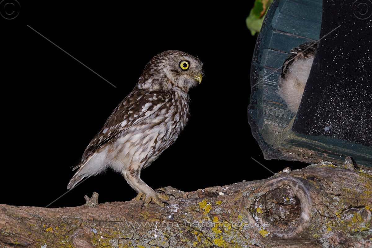 Junger Steinkauz (Athene noctua) wird gefüttert