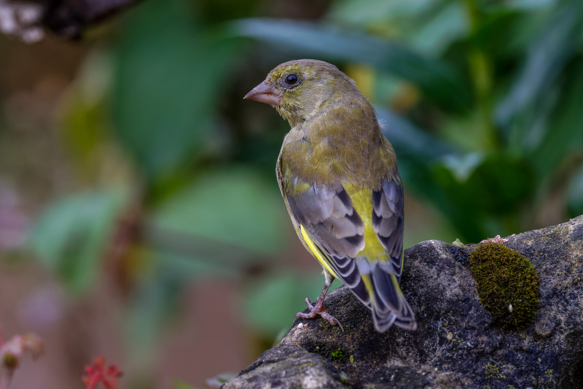 Grünfink (Carduelis chloris) streitet mit Haussperling - KI Unterstützung