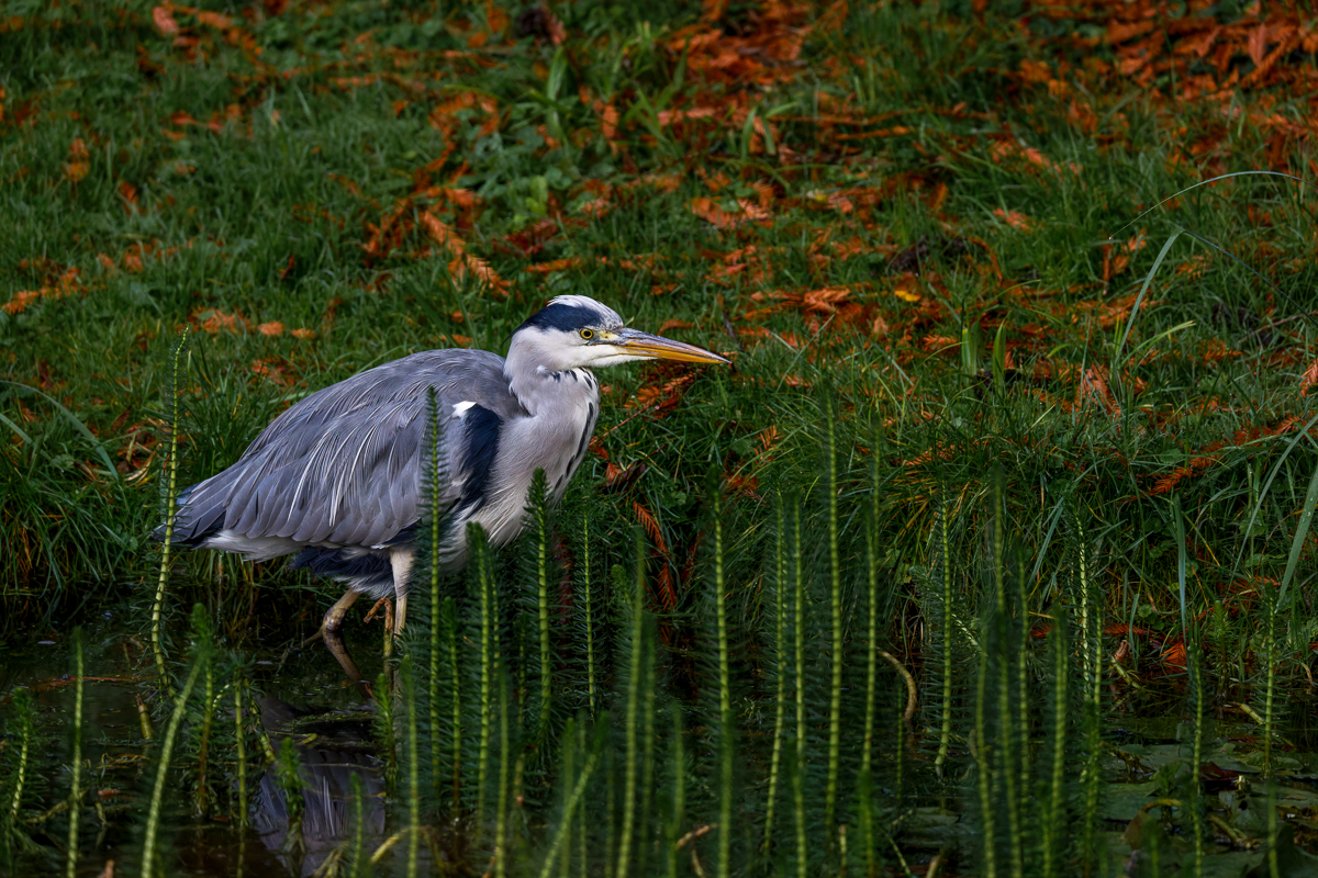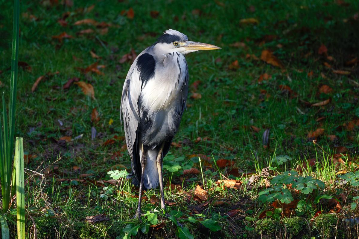 In einem Stuttgarter Park wird es auch wieder interessant. Ein Graureiher hält die Nähe von Menschen sehr gut aus, Goldhähnchen sind unterwegs und die Eichhörnchen suchen Nüsse um diese zu vergraben.
