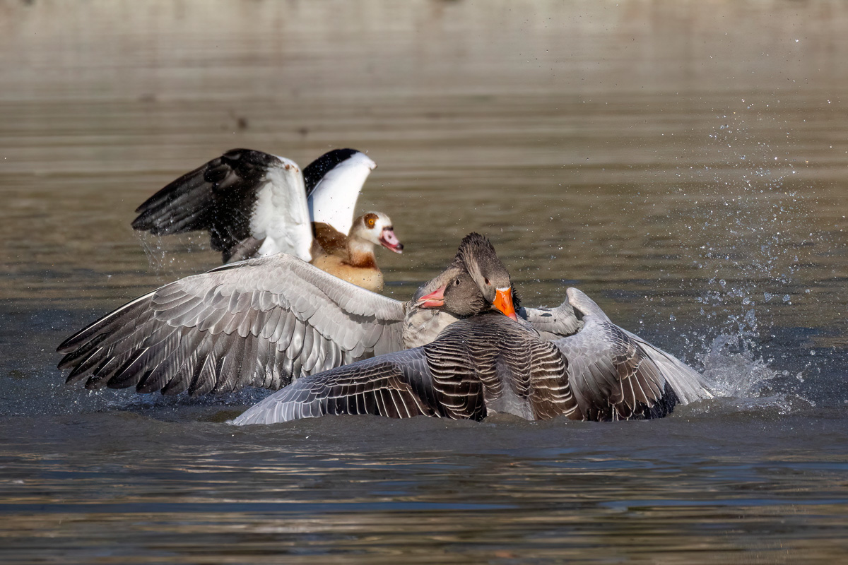 Graugänse (Anser anser) streiten sich
