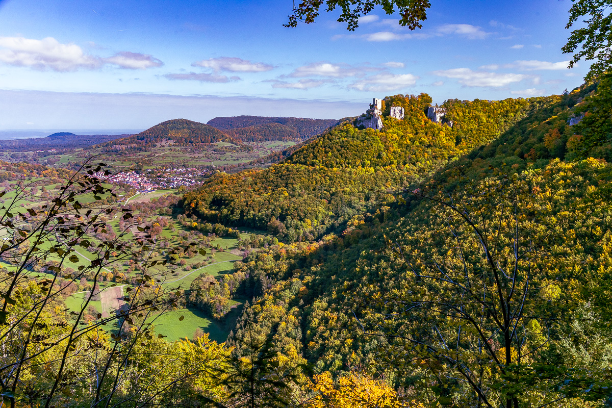 Herbststimmung im Neidlinger Tal, BW, LKR Esslingen, mit Burgruine Reußenstein