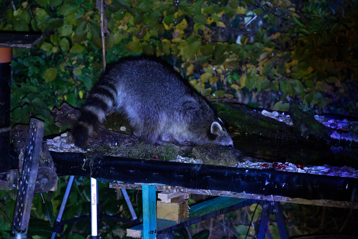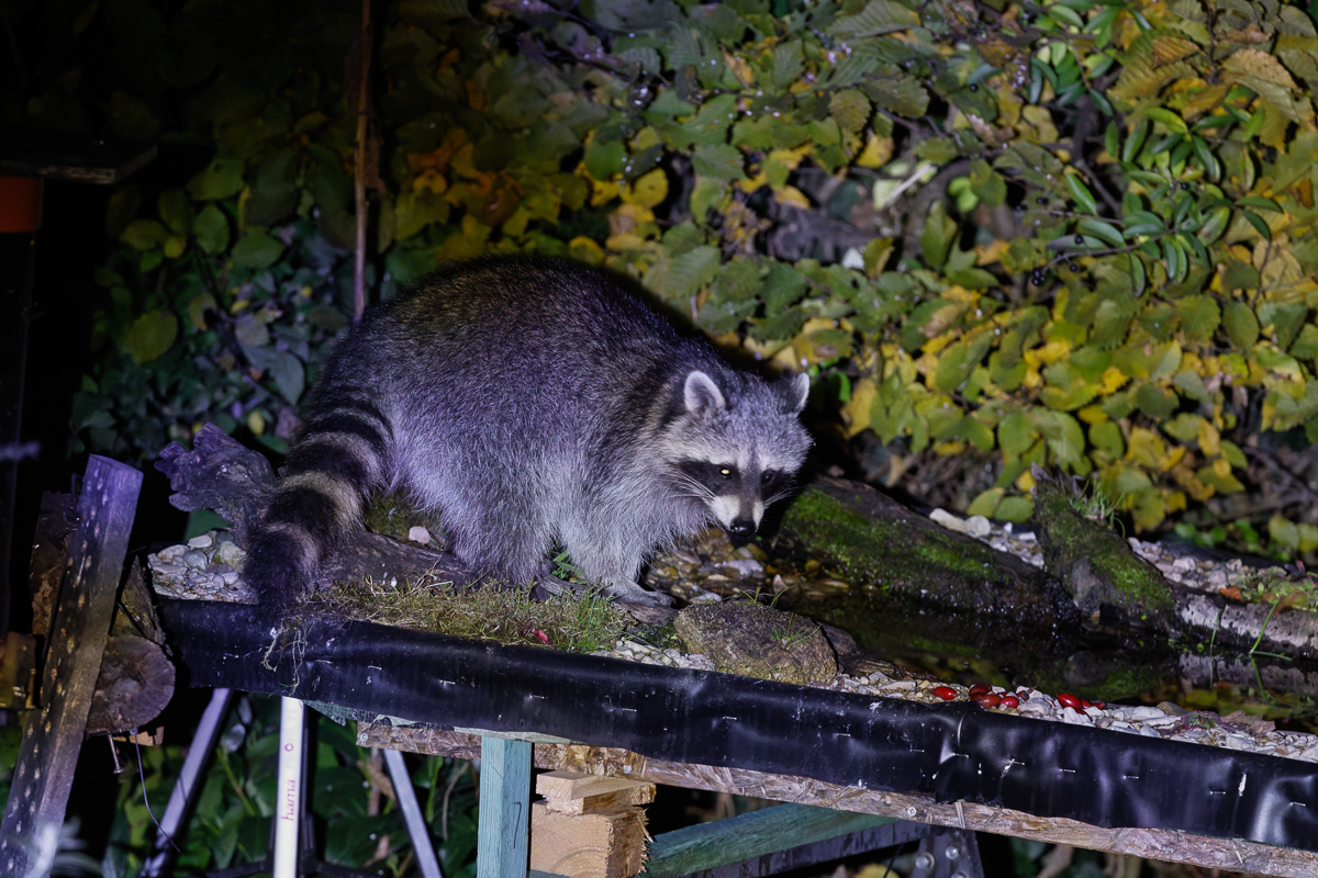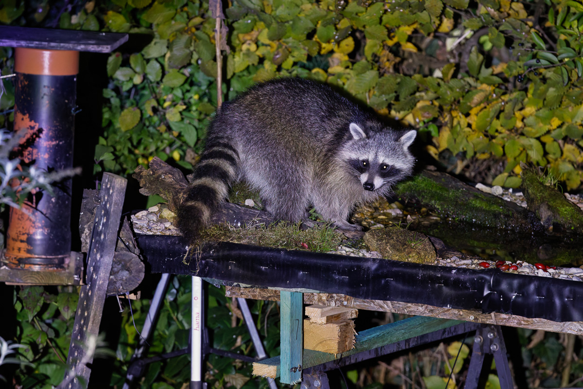 In den letzten Tagen war ich in der Umgebung unterwegs um Herbststimmungen zu fotografieren. Ein Waschbär holt sich abends Vogelfutter aus dem Garten.