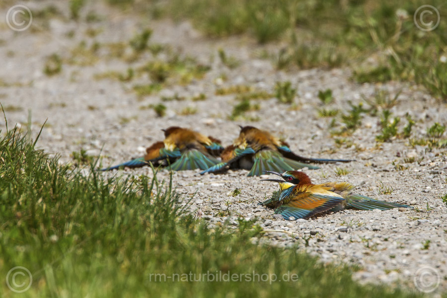 Bienenfresser (Merops apiaster) beim Staubbad