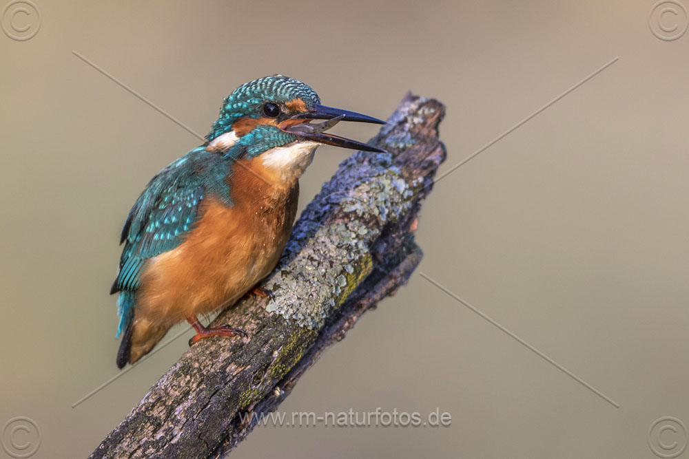 Eisvogel (Alcedo atthis) Männchen, Drohhaltung