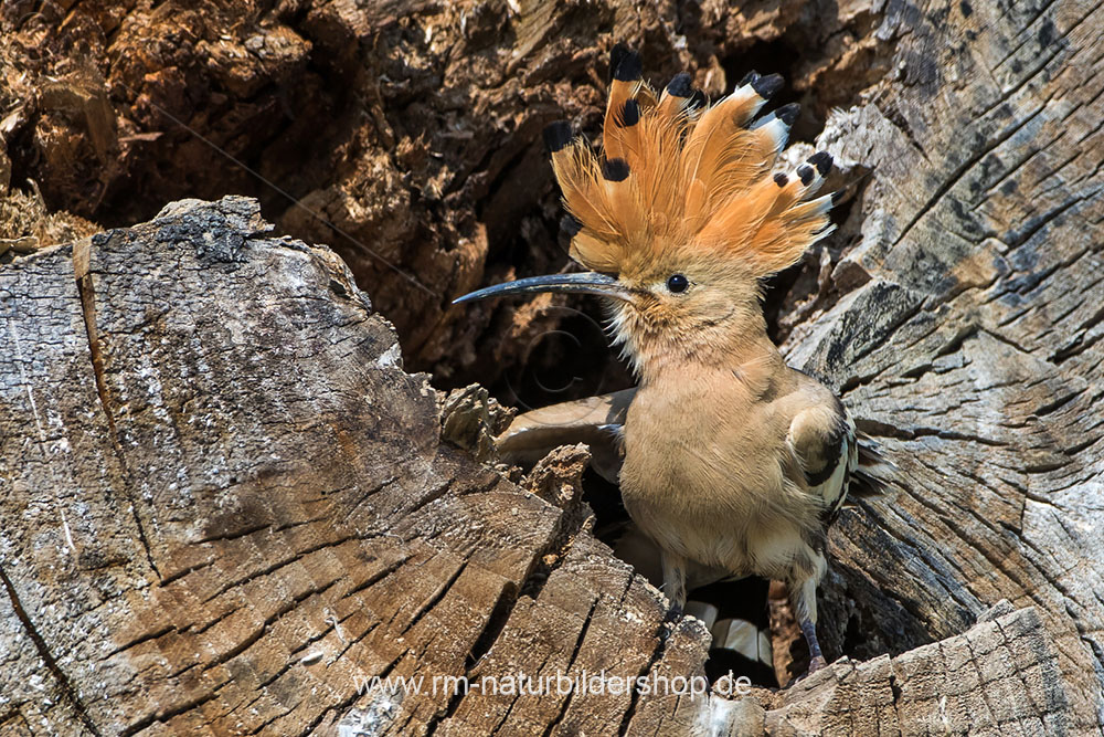 Wiedehopf-Biotop, Nistplatz in altem Baumstamm