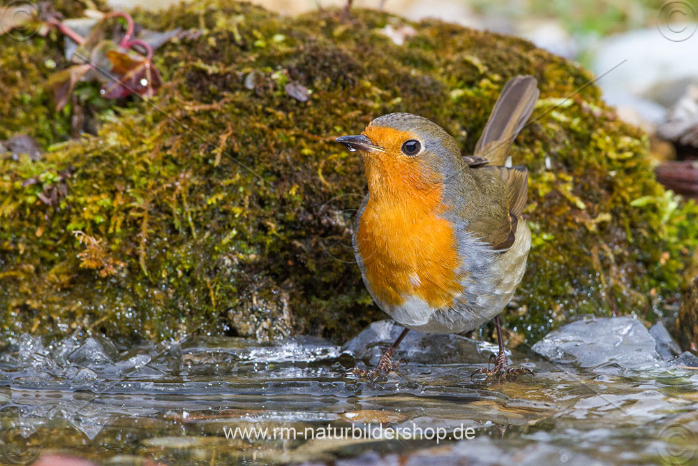Rotkehlchen, Hintergrundbild als Sitzgelegenheit