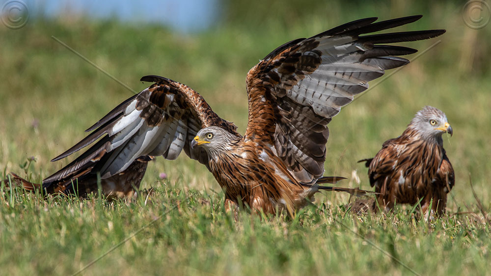 Rotmilan (Milvus milvus) und Mäusebussard (Buteo buteo)
