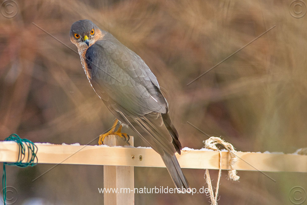 Sperber (Accipiter nisus) Männchen an der Winterfütterung