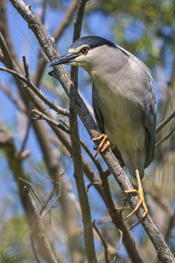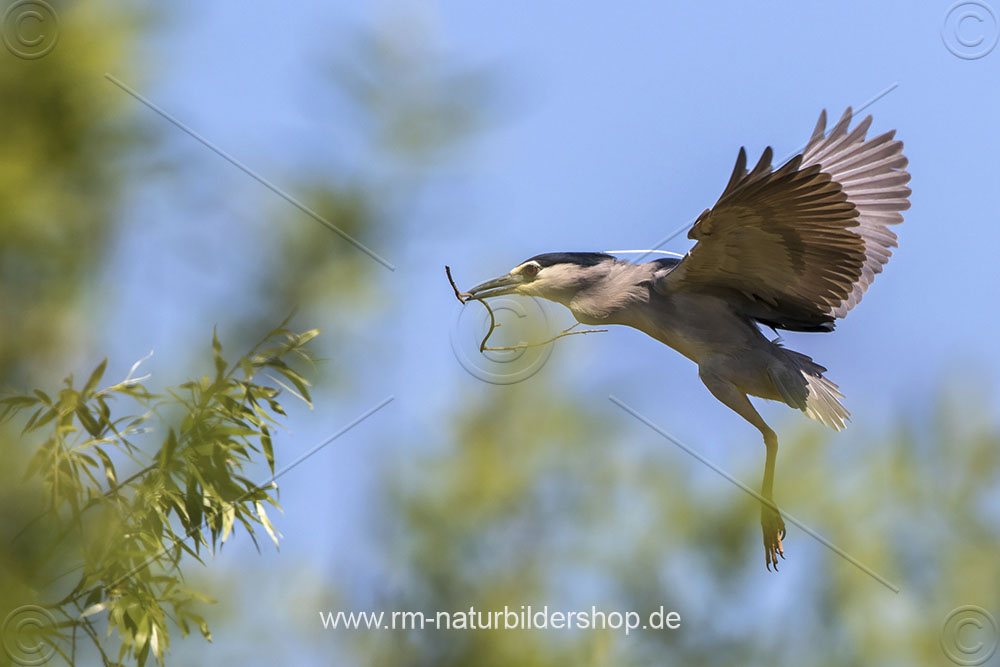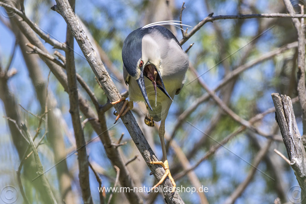 Nachtreiher (Nycticorax nycticorax) würgt Speiballen hervor