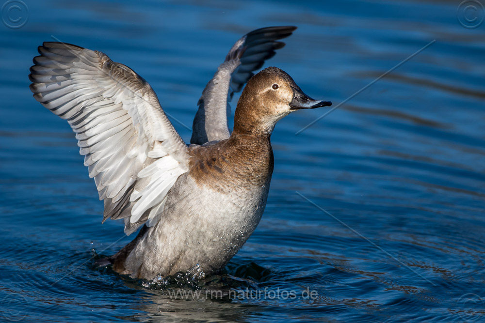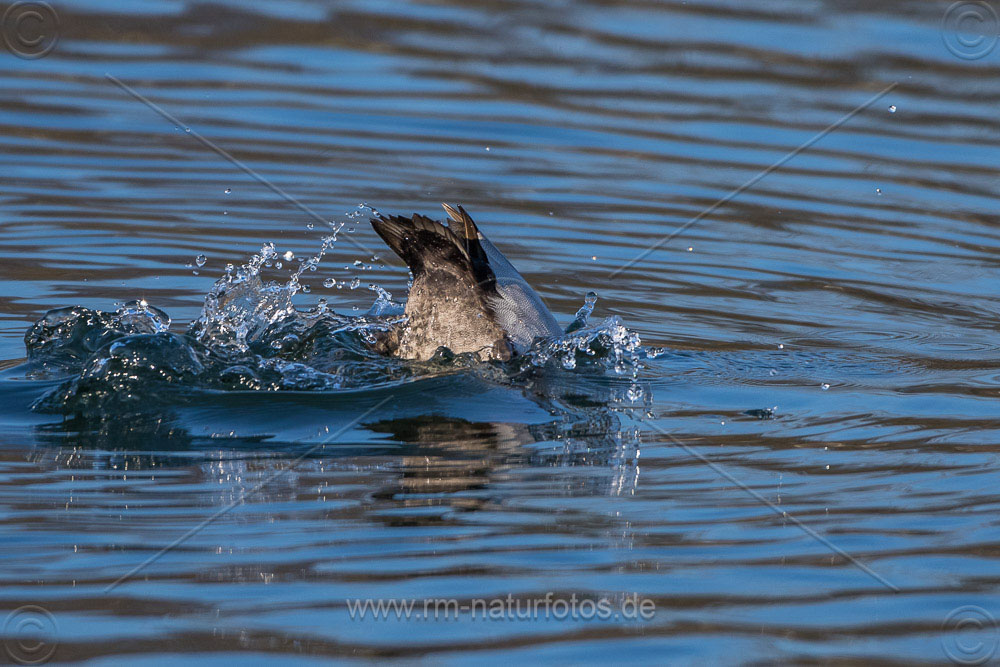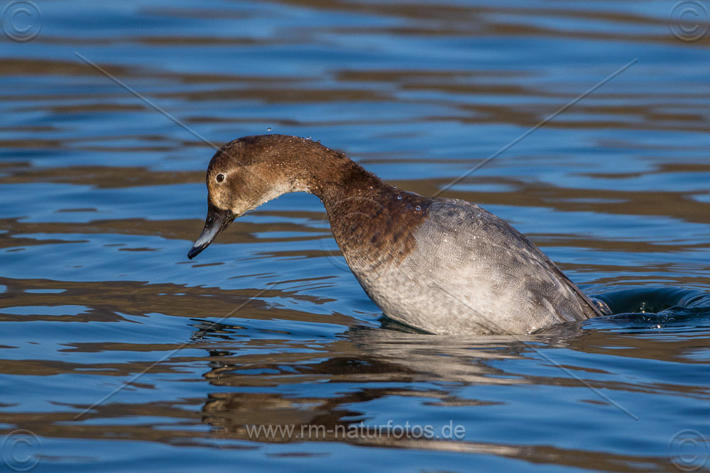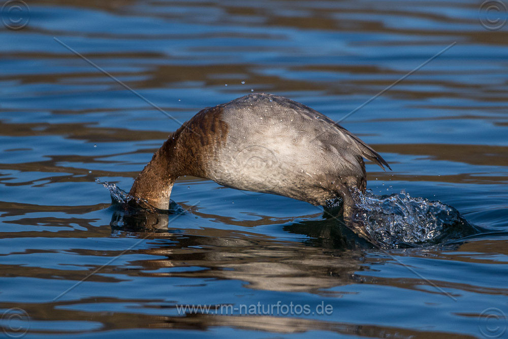 Tafelente (Aythya ferina) Weibchen beim Tauchsprung