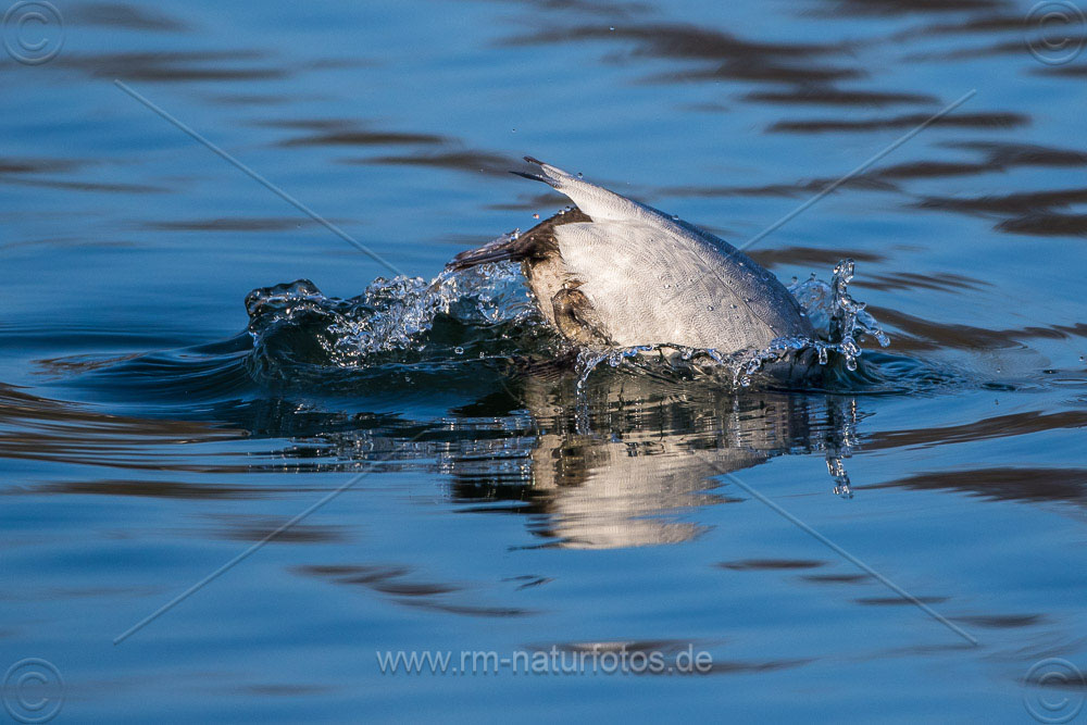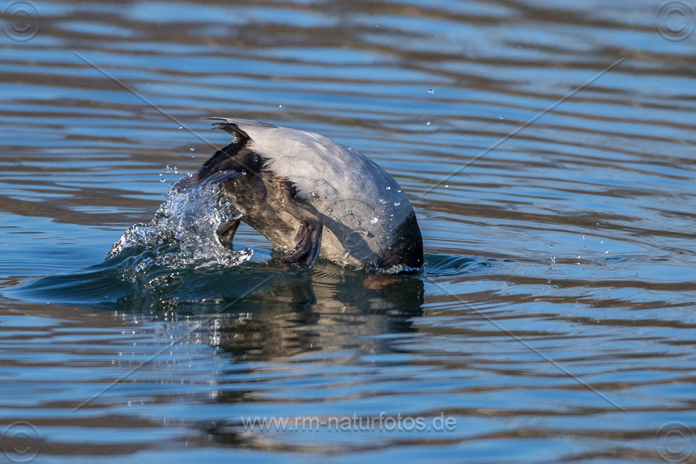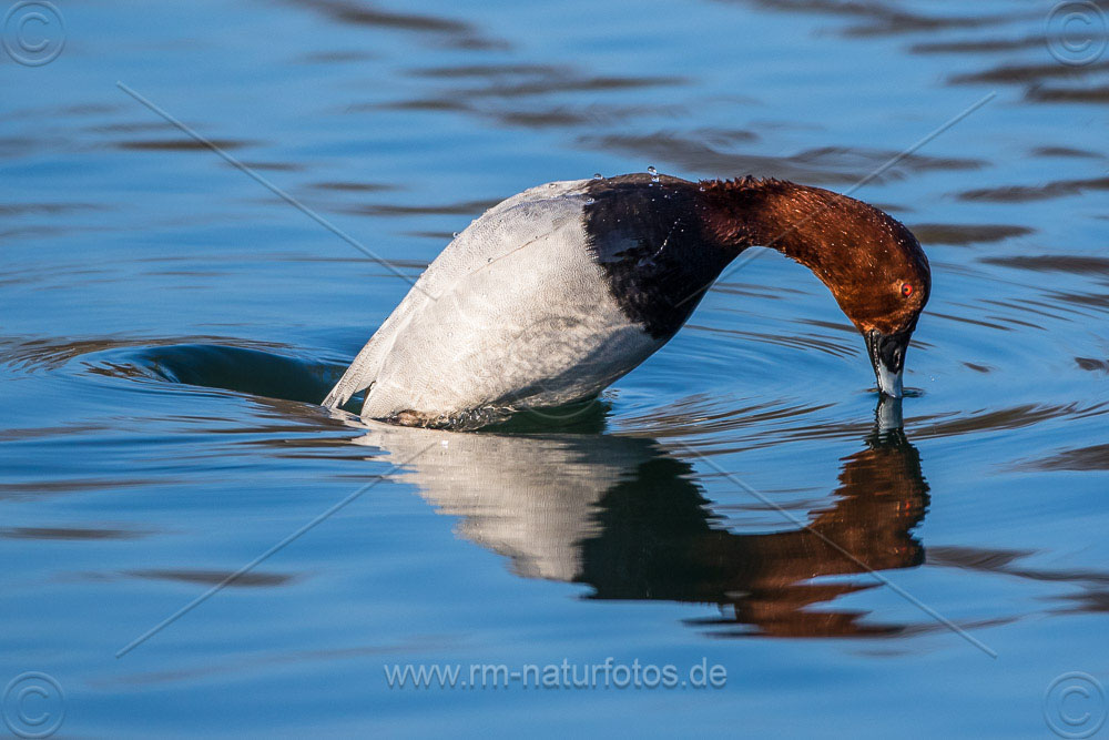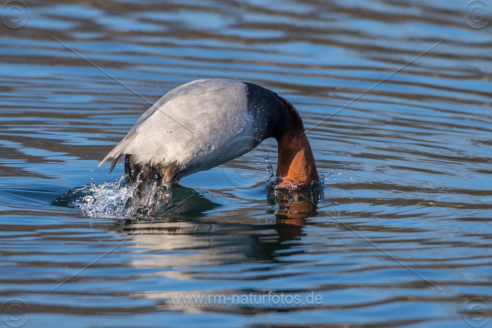 Tafelente (Aythya ferina) Männchen beim Tauchsprung