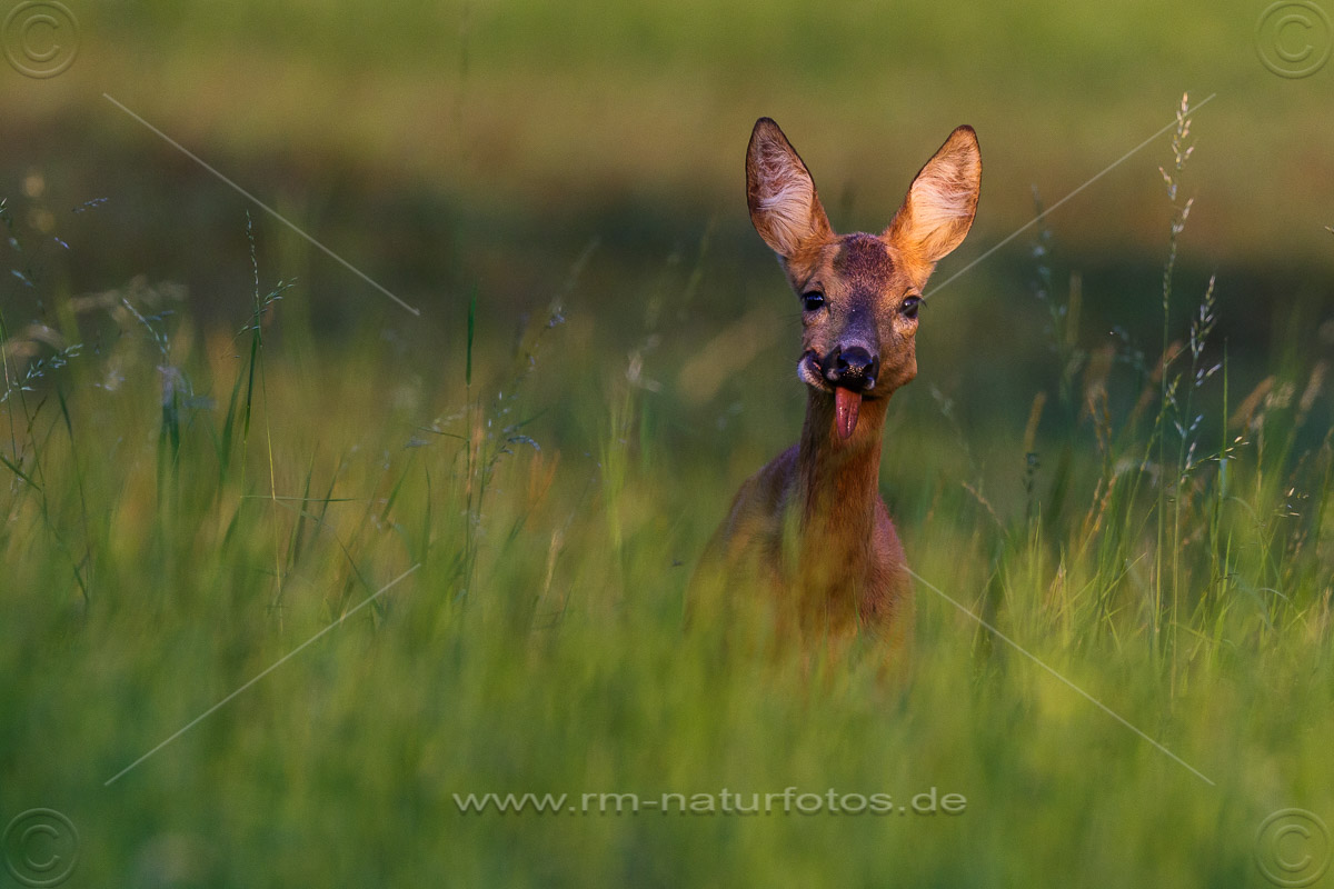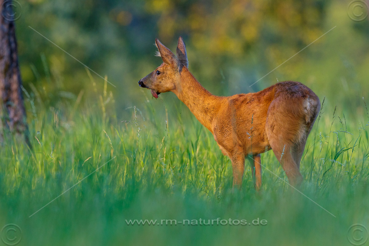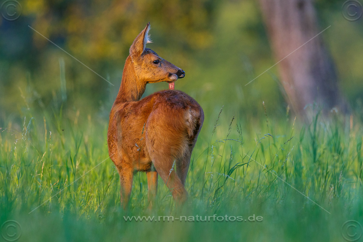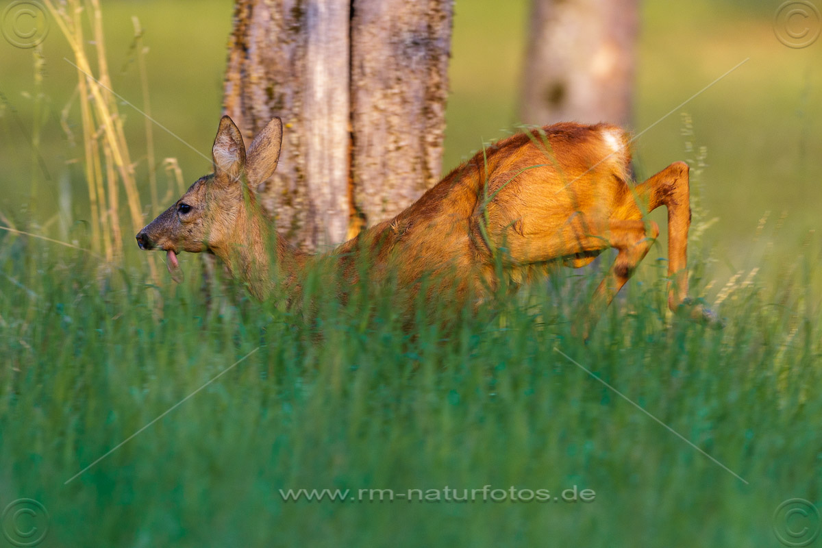 Rehgeiß (Capreolus capreolus) mit verletztem Äser