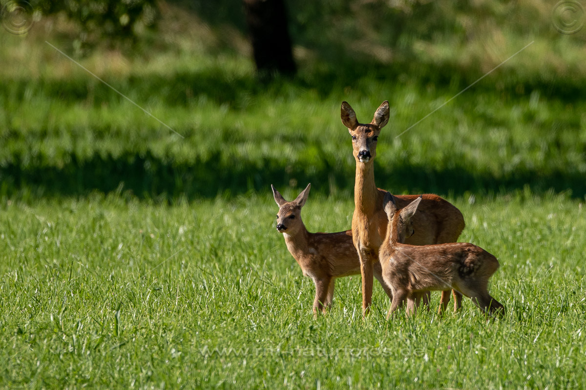 Reh (Capreolus capreolus) mit zwei Kitzen