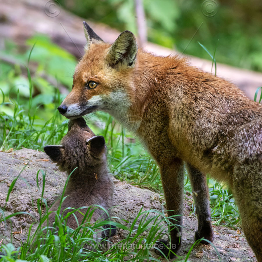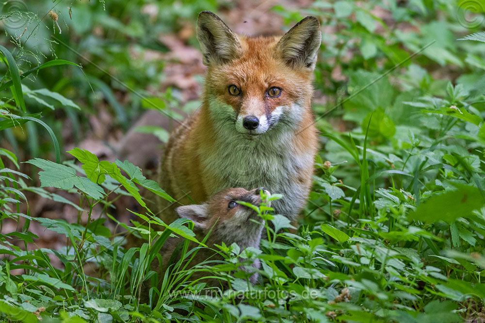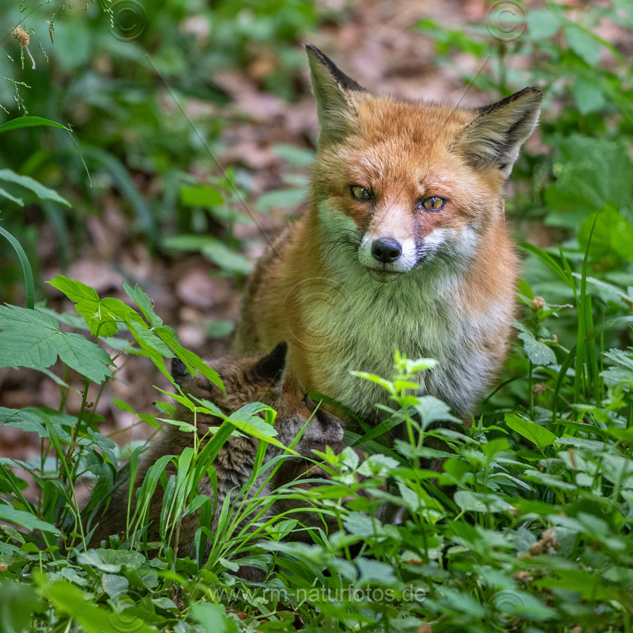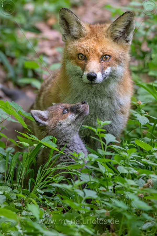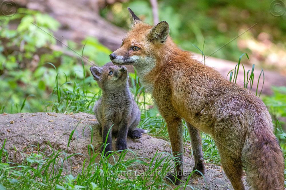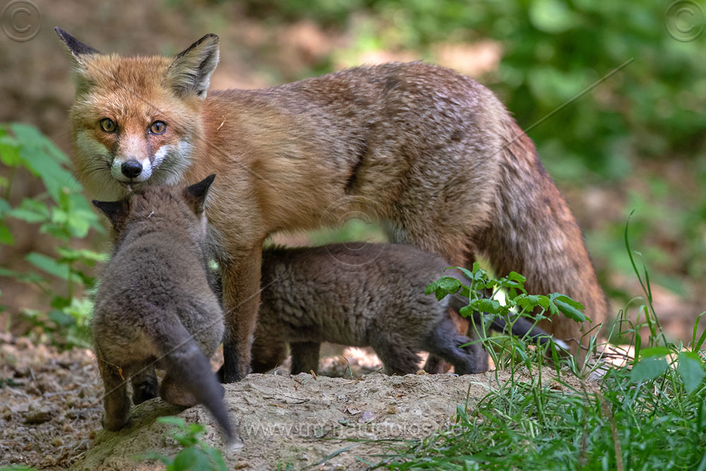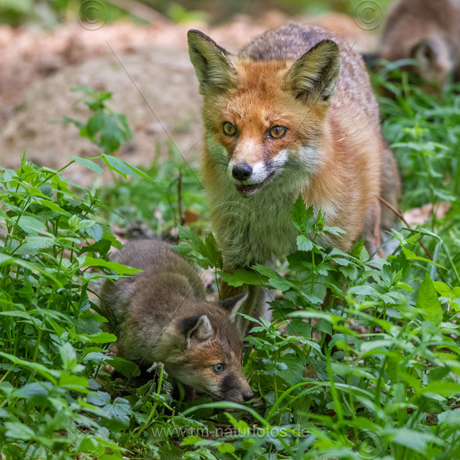 Rotfuchs (Vulpes vulpes) mit Jungen