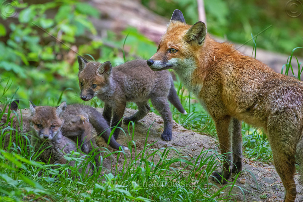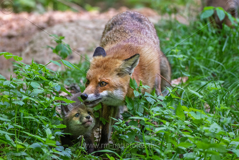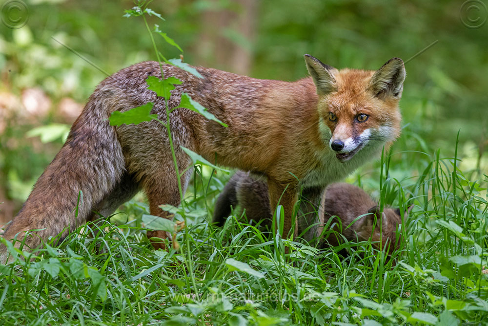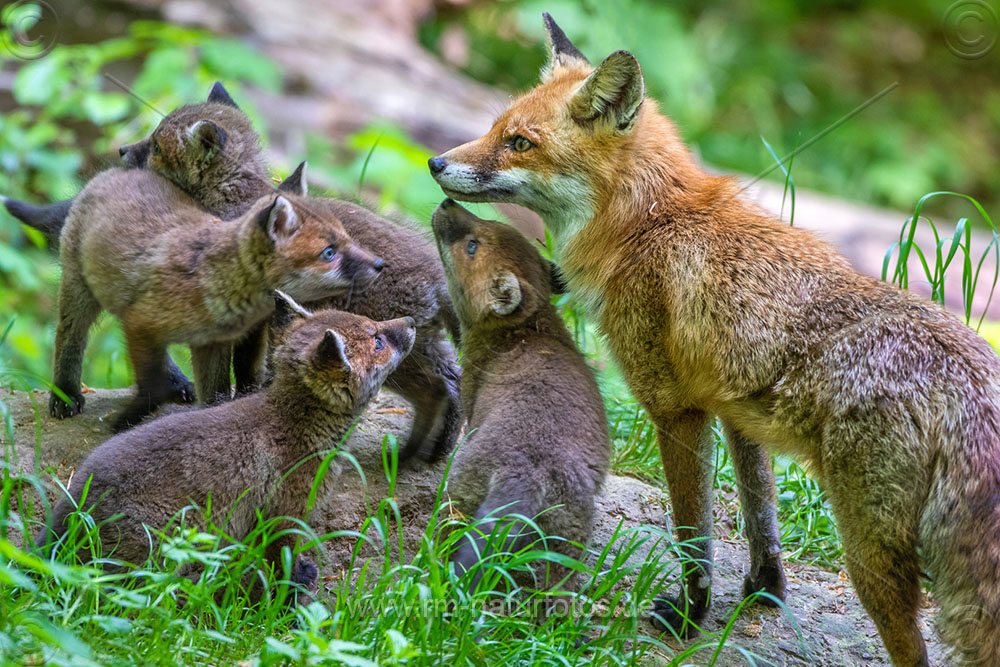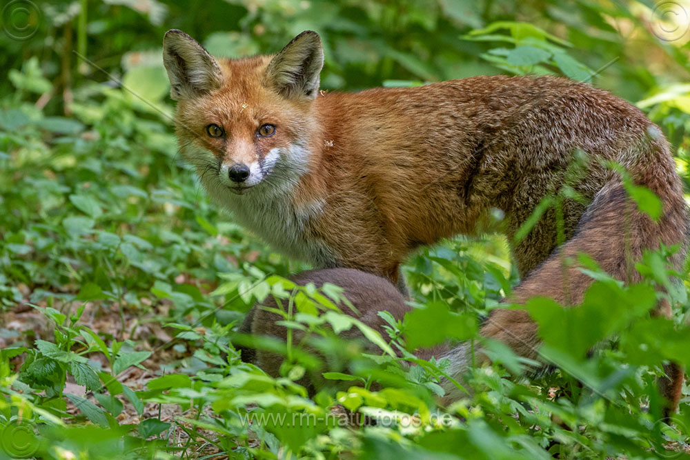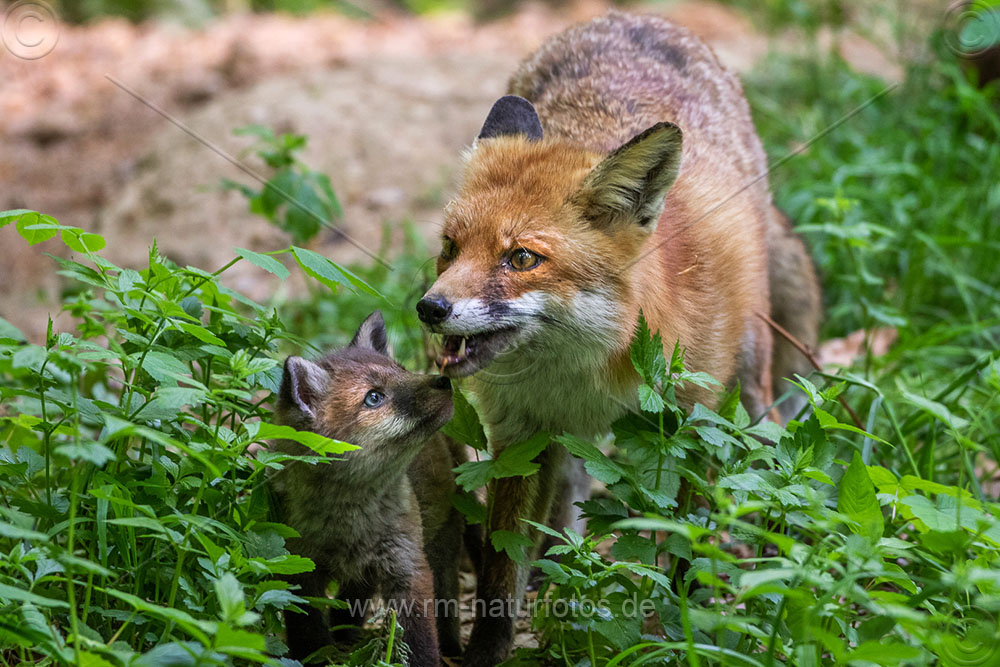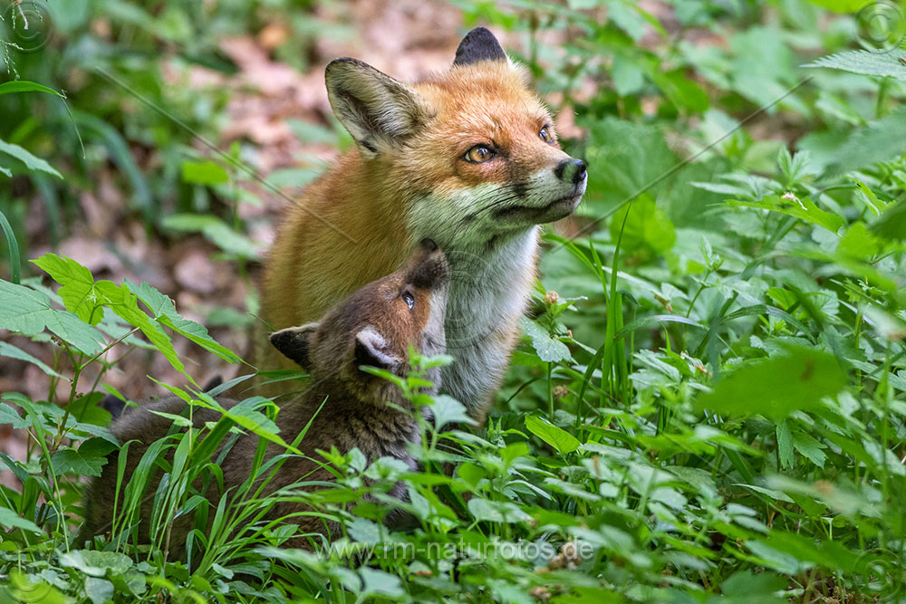 Rotfuchs (Vulpes vulpes) mit Jungen