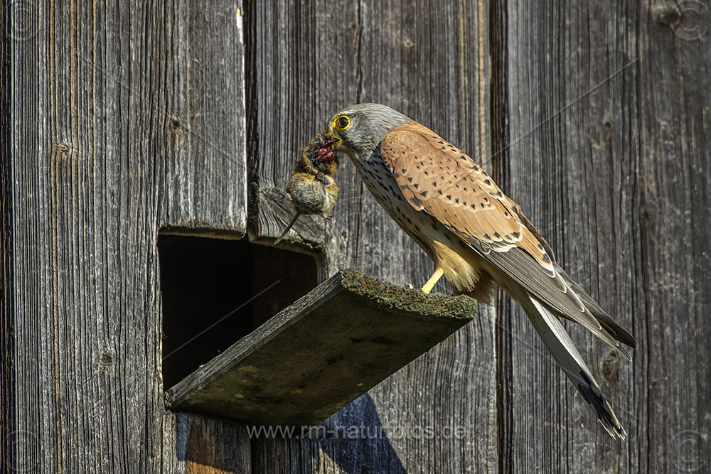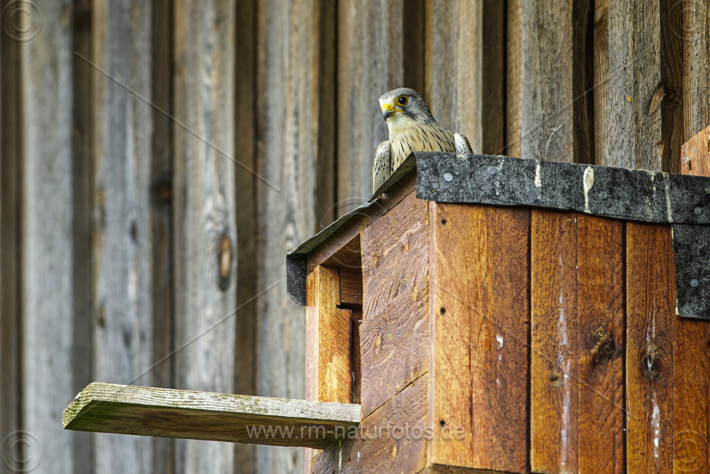 Turmfalke (Falco tinnunculus) Männchen am Nistkasten