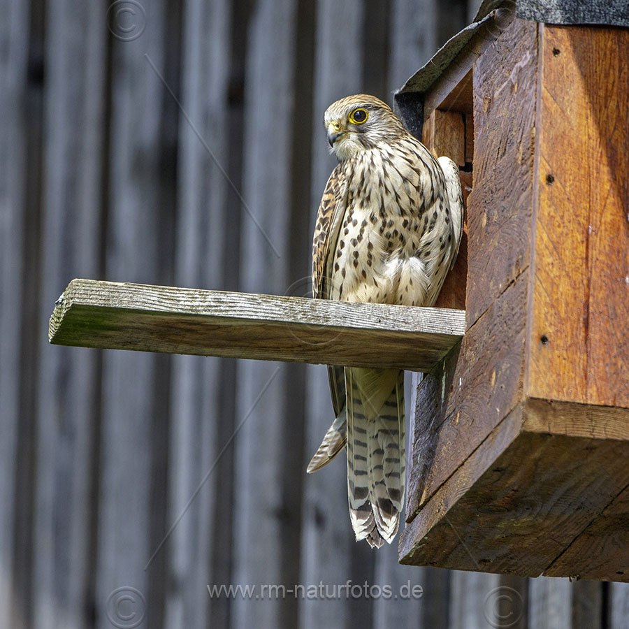 Turmfalke (Falco tinnunculus) Weibchen am Nistkasten
