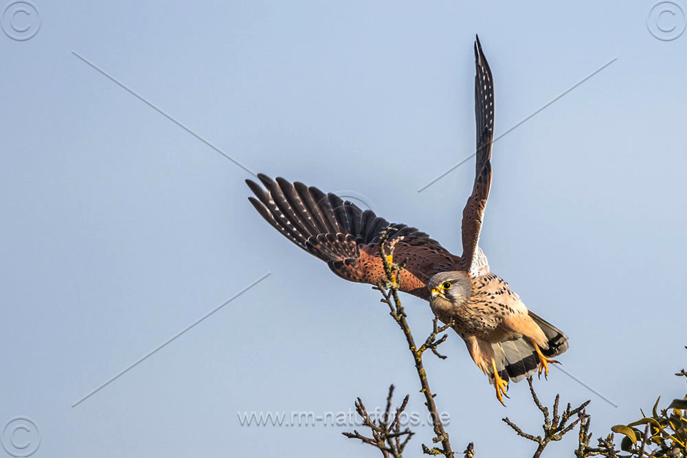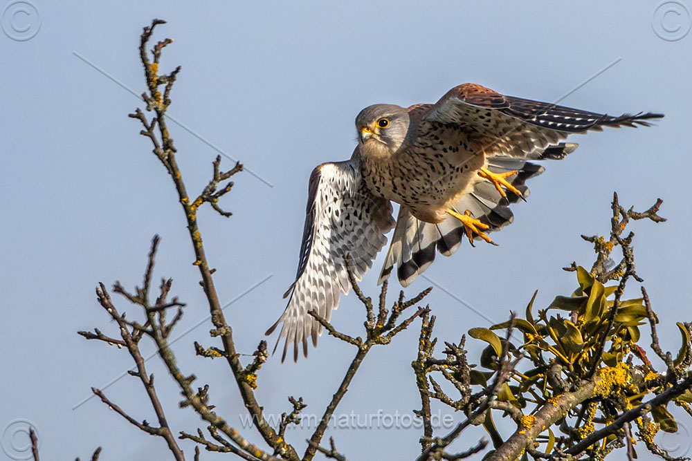 Turmfalke (Falco tinnunculus) Männchen mit Maus