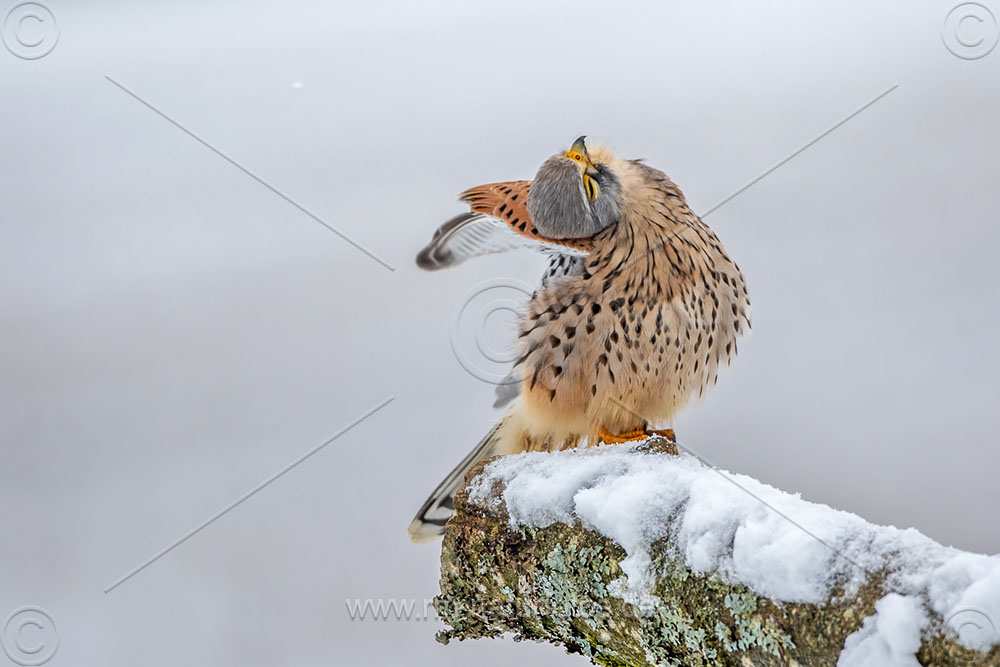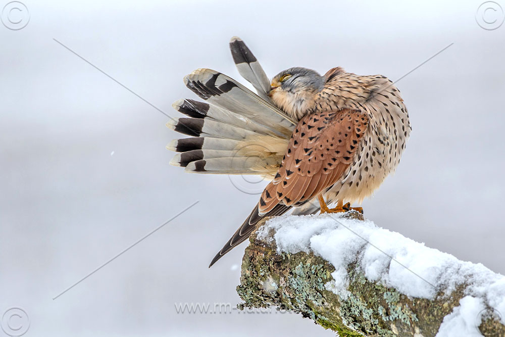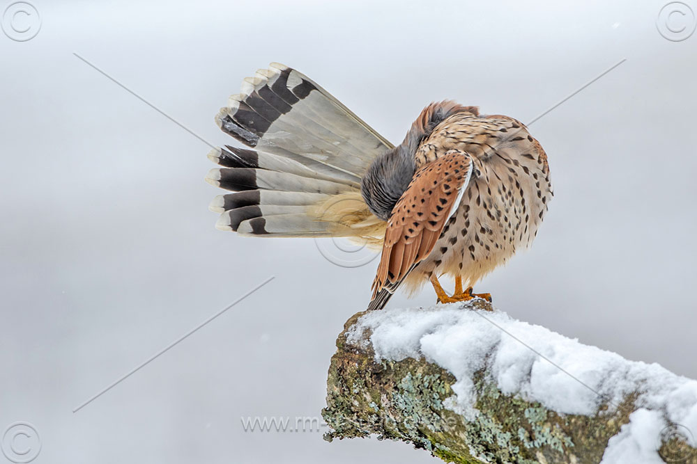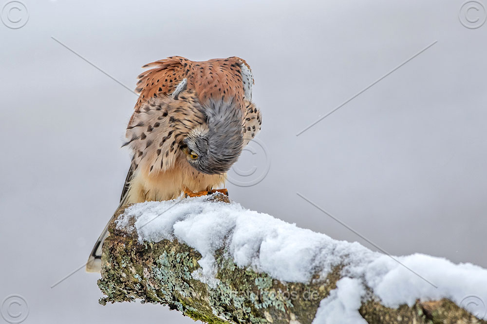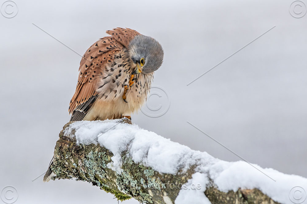 Turmfalke (Falco tinnunculus) Männchen bei der Gefiederpflege