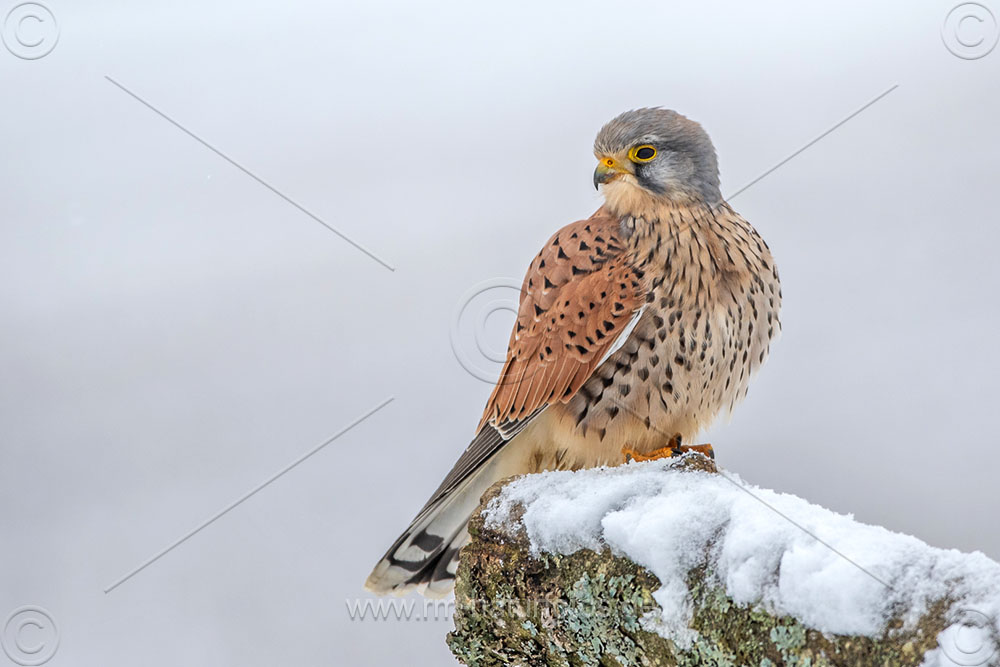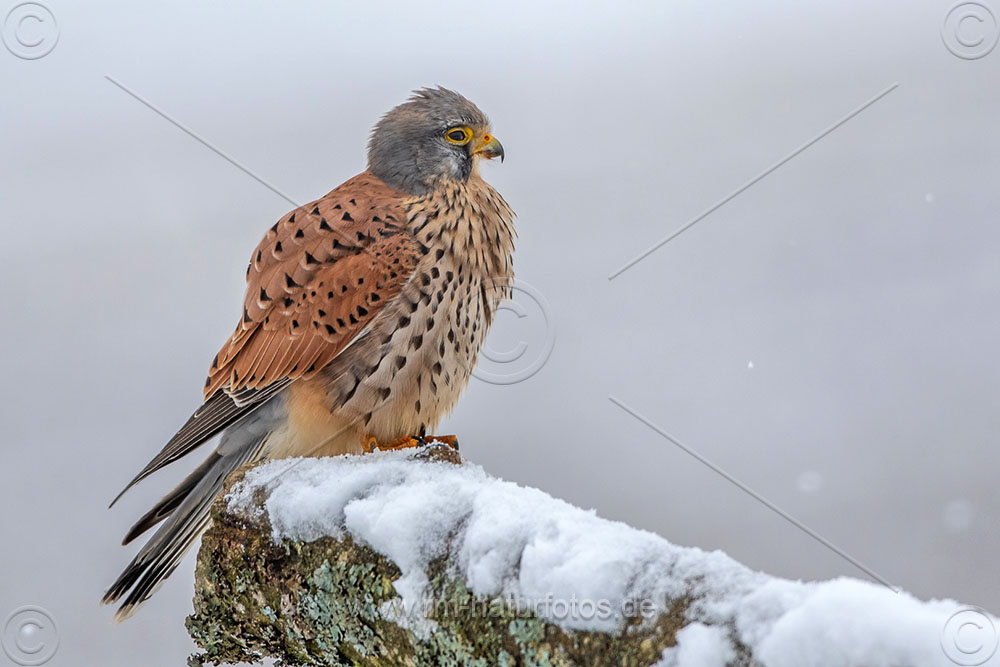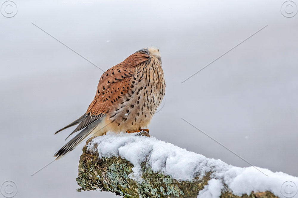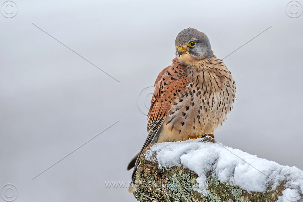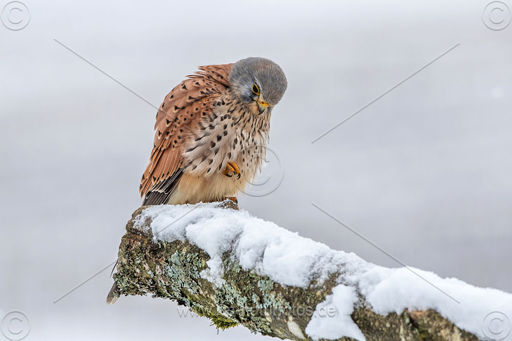 Turmfalke (Falco tinnunculus) Männchen bei der Gefiederpflege