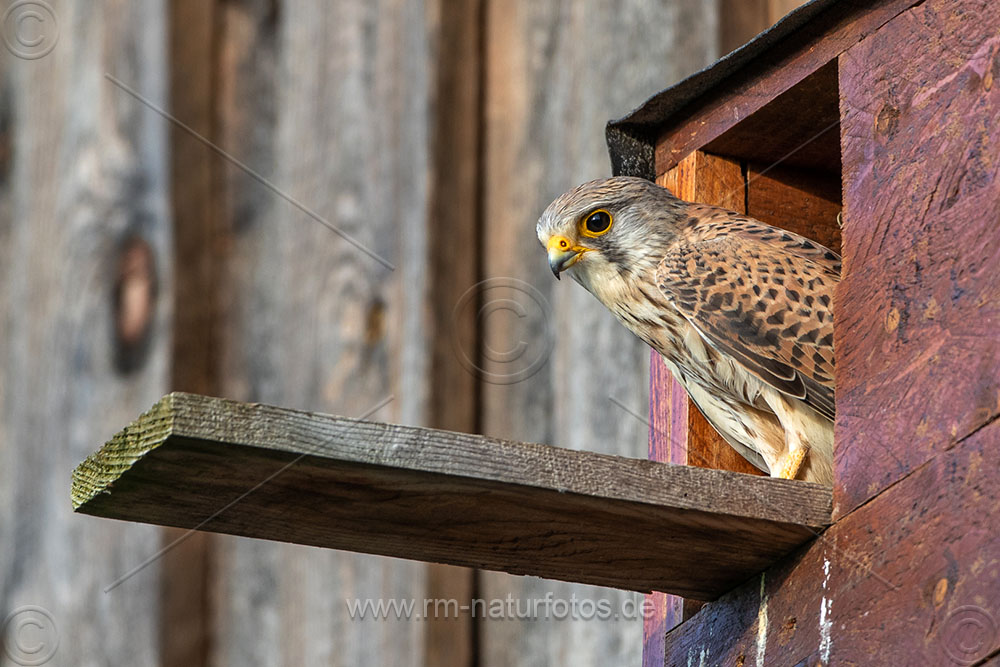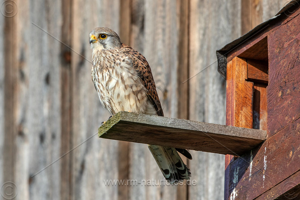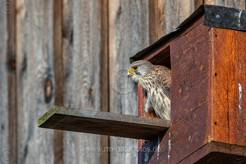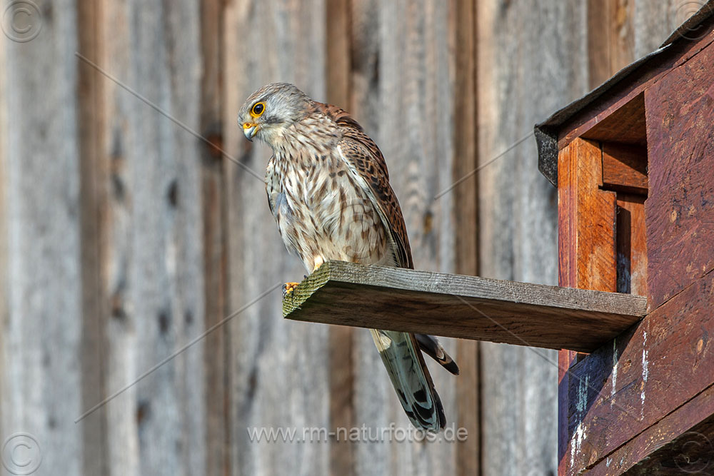 Turmfalke (Falco tinnunculus) Männchen am Nistkasten
