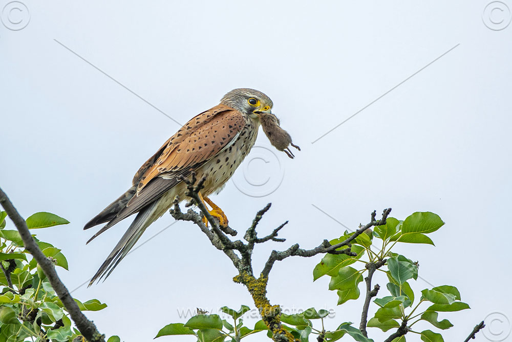 Turmfalke (Falco tinnunculus) Männchen mit Feldmaus