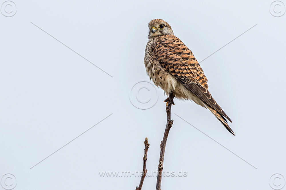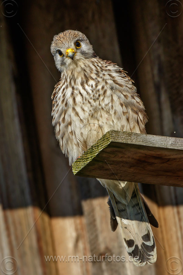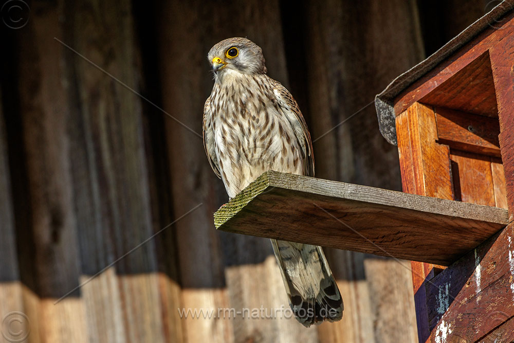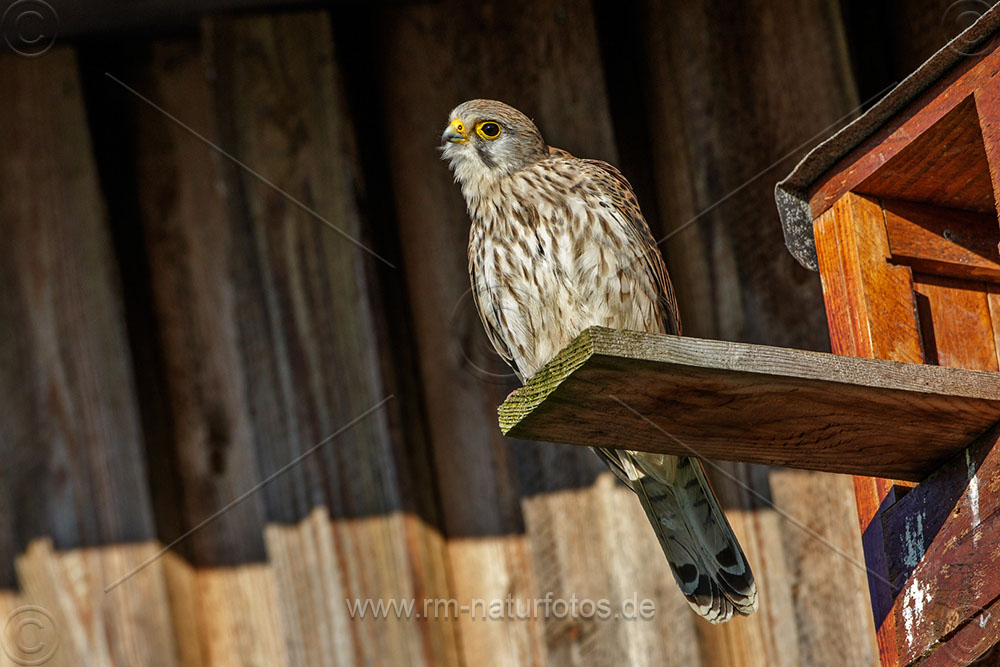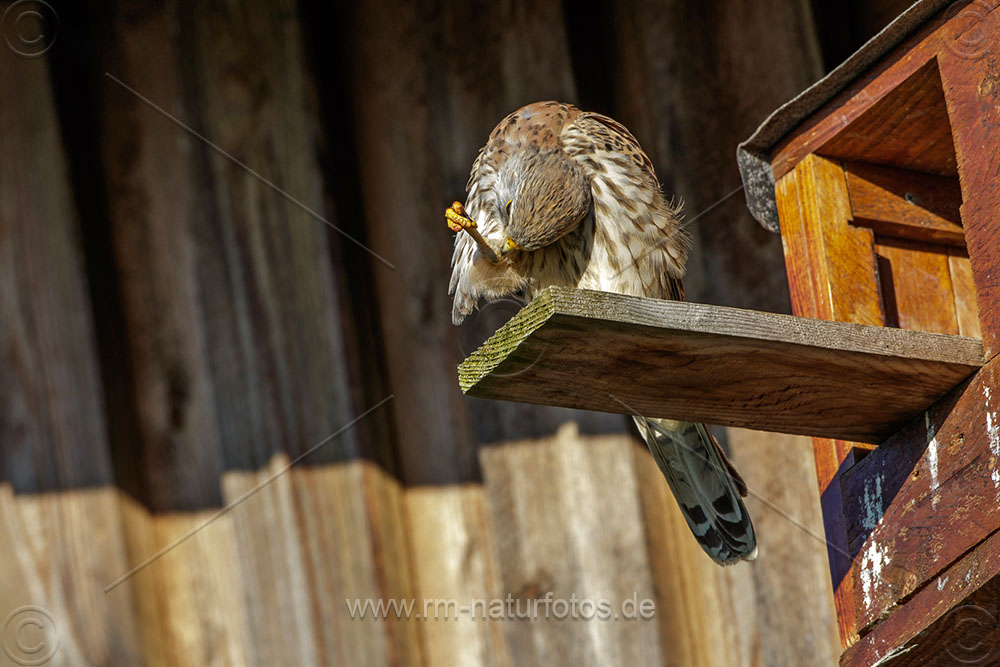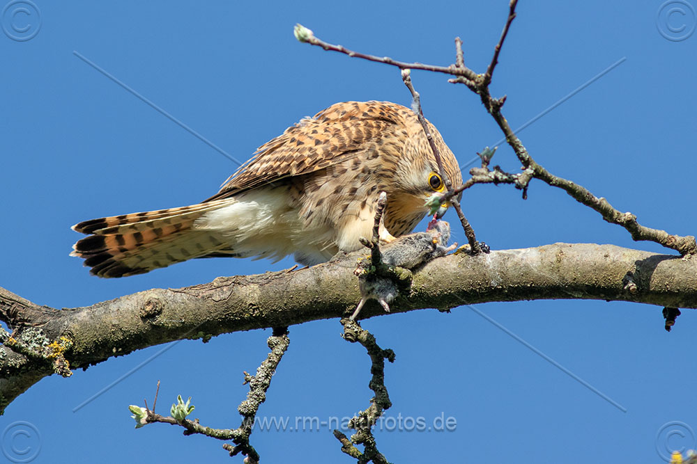 Turmfalke (Falco tinnunculus) Weibchen mit Beute