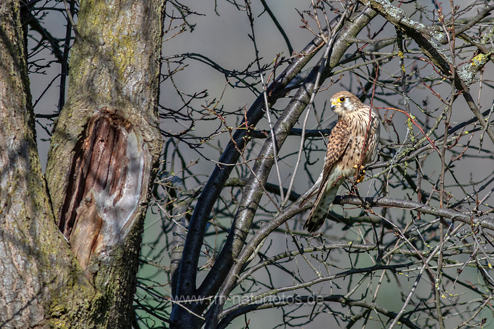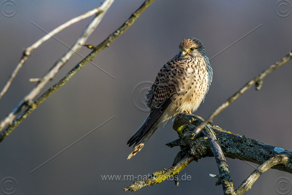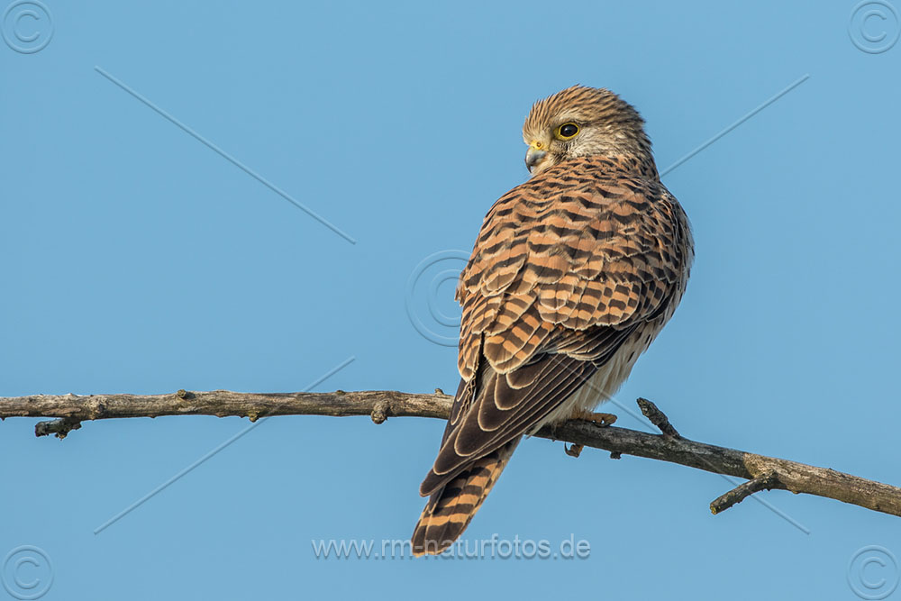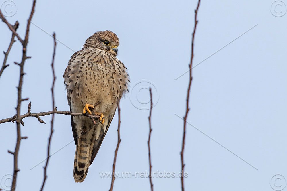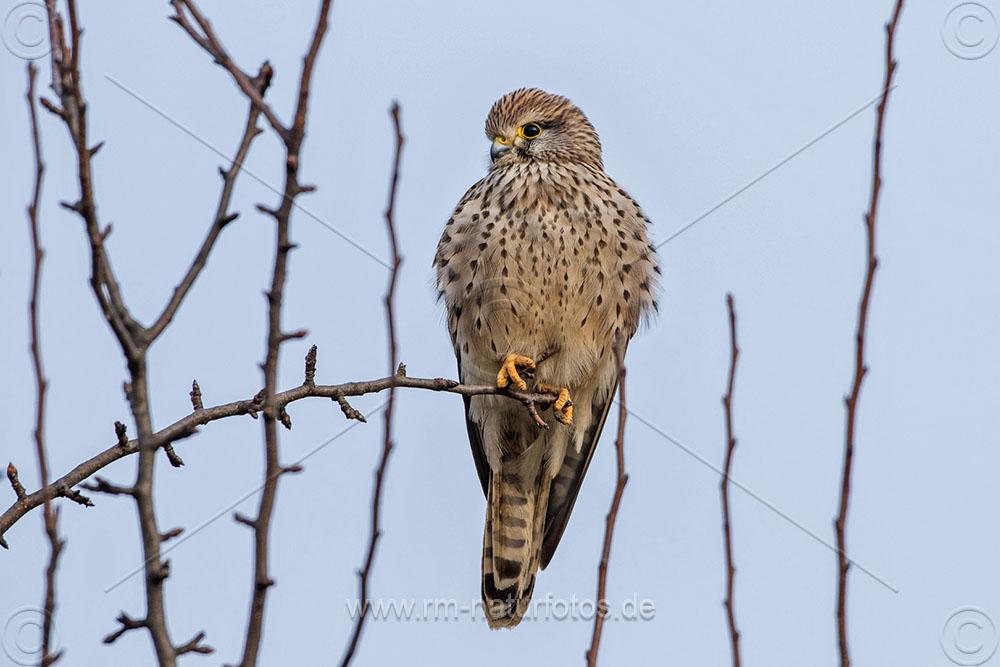Turmfalke (Falco tinnunculus) Weibchen mit Beute