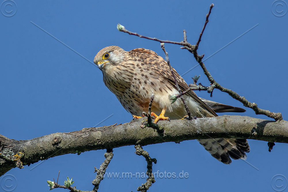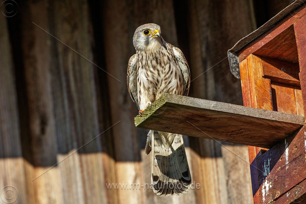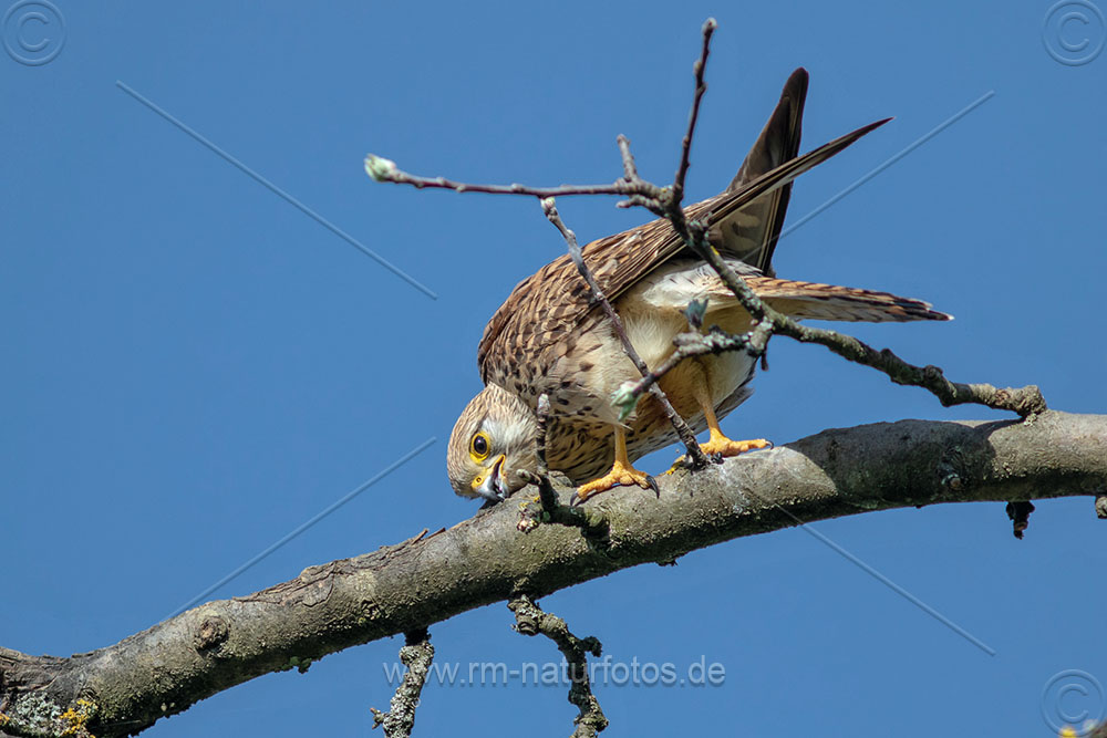 Turmfalke (Falco tinnunculus) Weibchen putzt ihren Schnabel