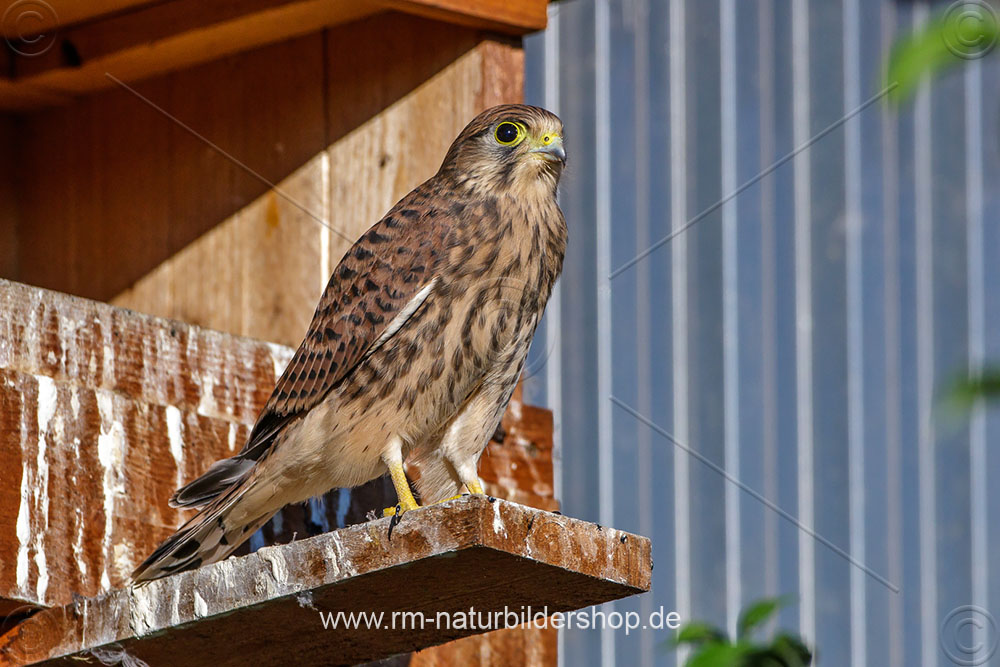 Turmfalke (Falco tinnunculus) Weibchen am Nistkasten
