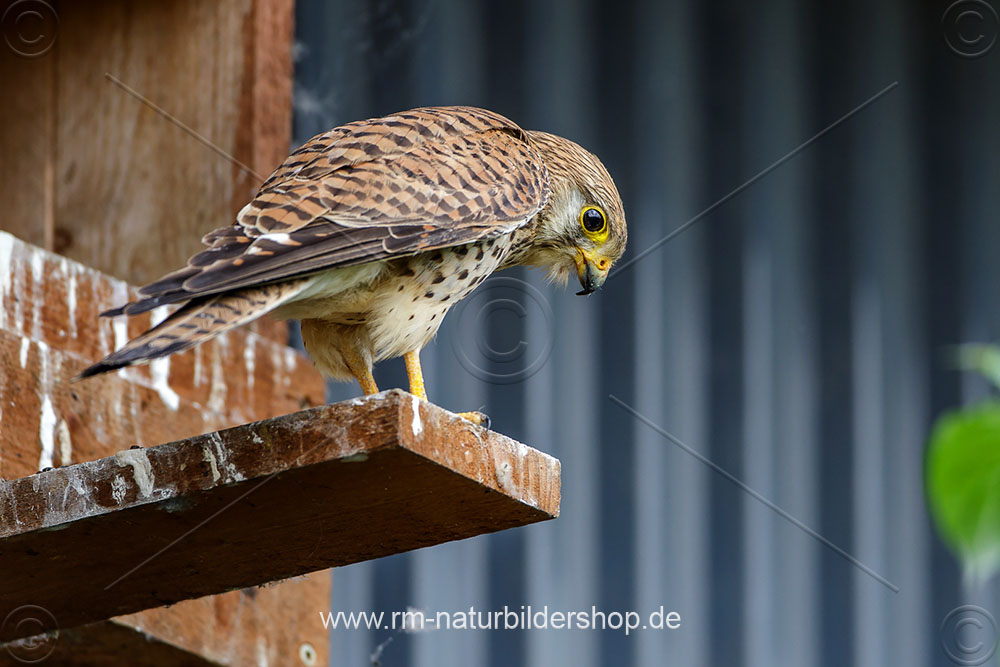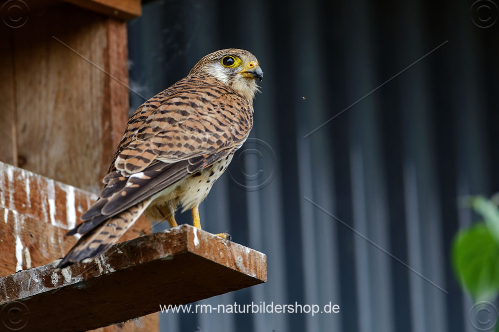 Turmfalke (Falco tinnunculus) Weibchen am Nistkasten