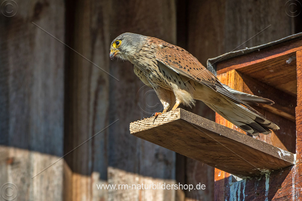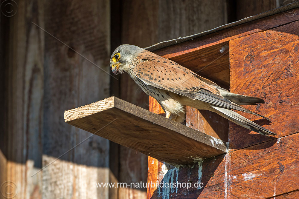 Turmfalke (Falco tinnunculus) Männchen am Nistkasten