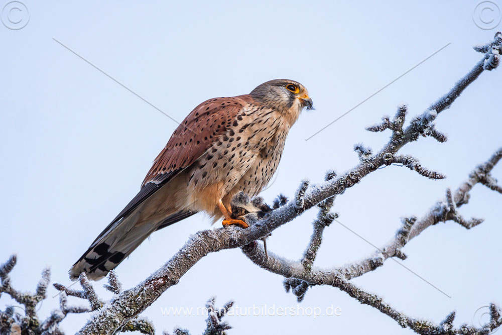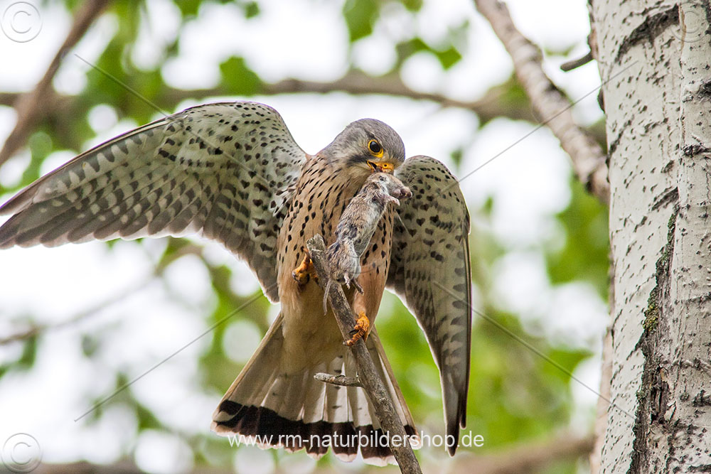 Turmfalke (Falco tinnunculus) Männchen mit Beute