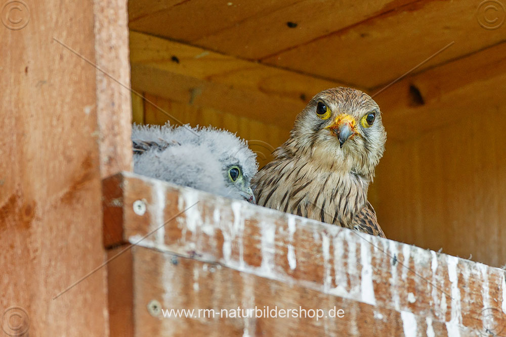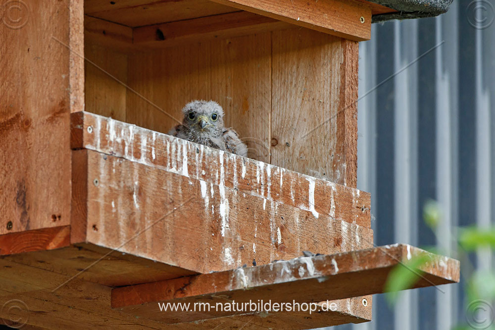 Turmfalke (Falco tinnunculus) Jungvogel in Nistkasten