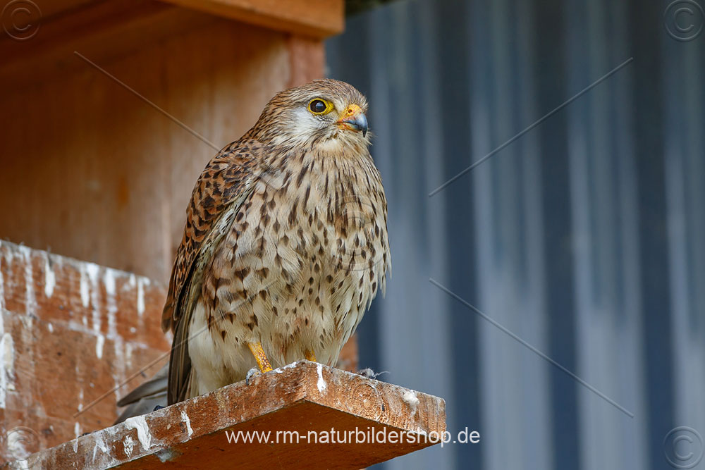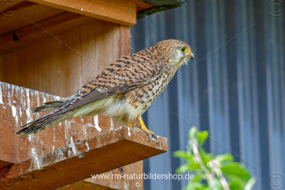 Turmfalke (Falco tinnunculus) Weibchen am Nistkasten