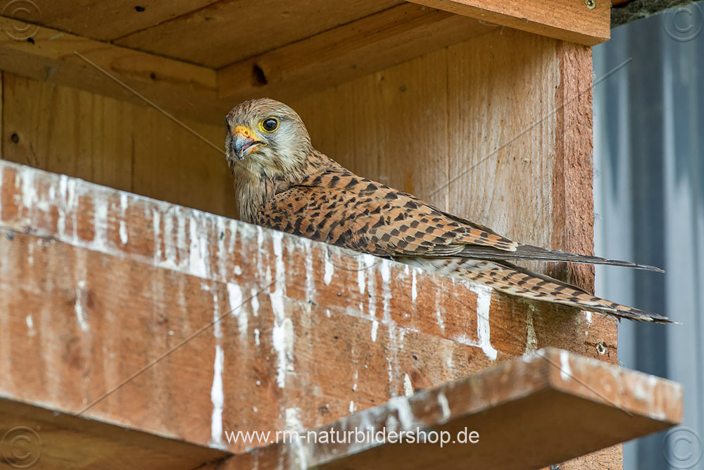 Turmfalke (Falco tinnunculus) Weibchen in Nistkasten