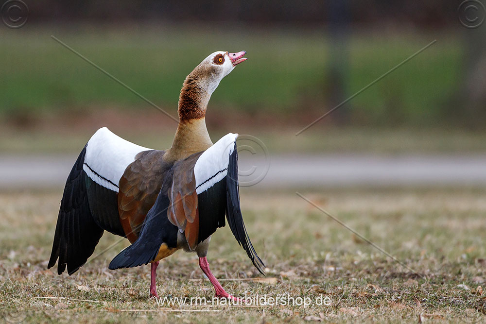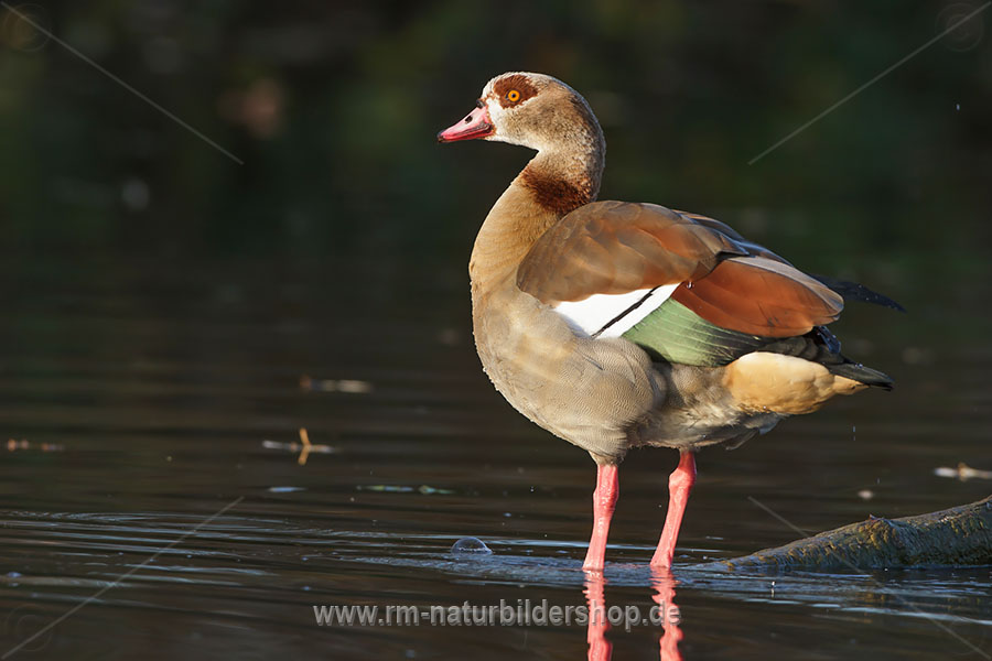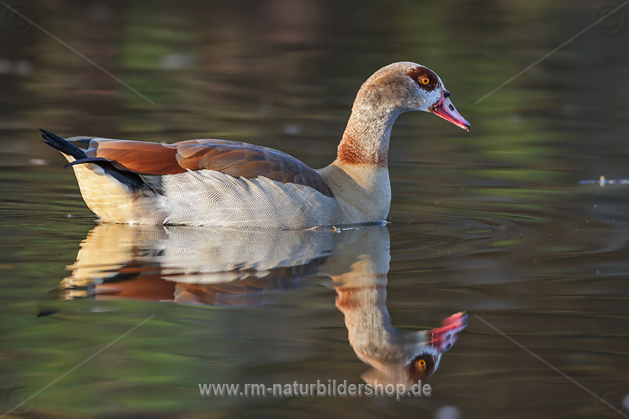 Nilgans (Alopochen aegyptiacus) mit Spiegelbild
