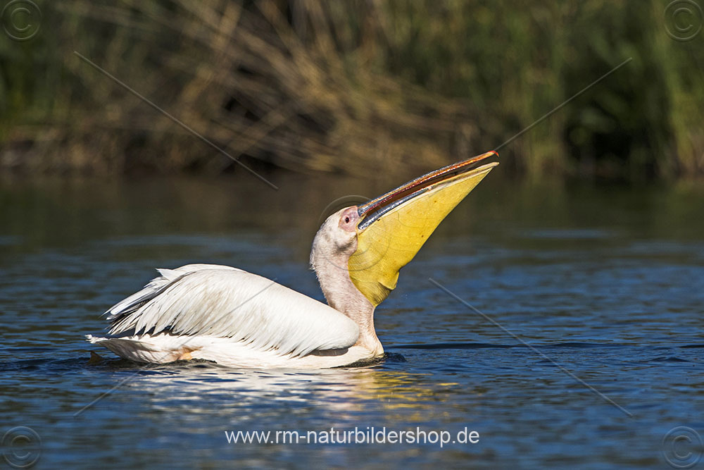 Rosapelikan (Pelecanus onocrotalus) beim Fischfang