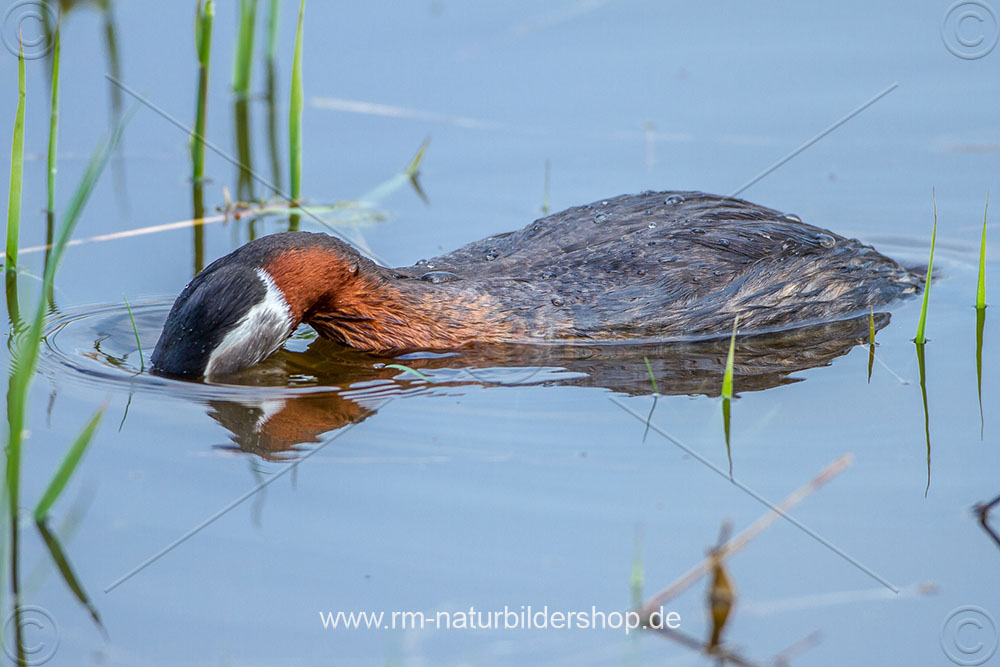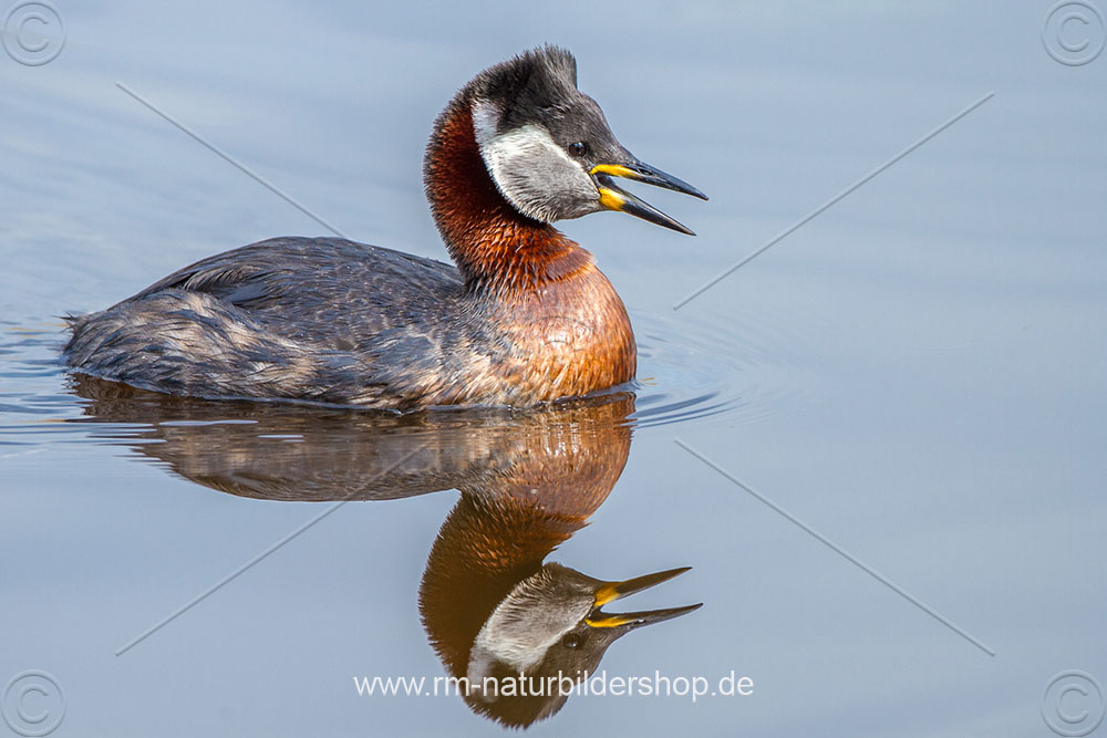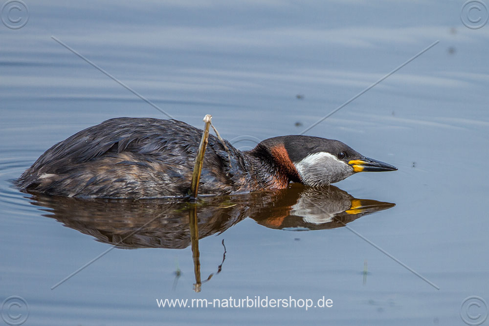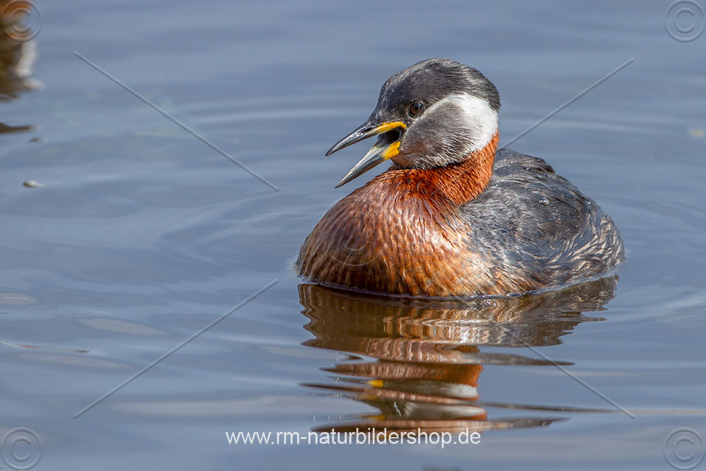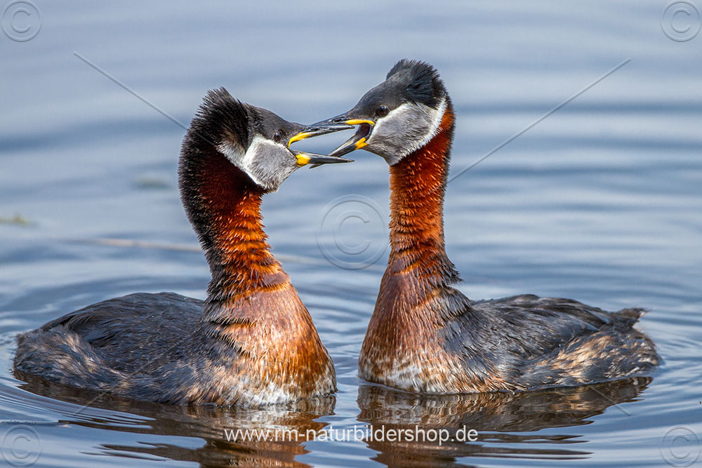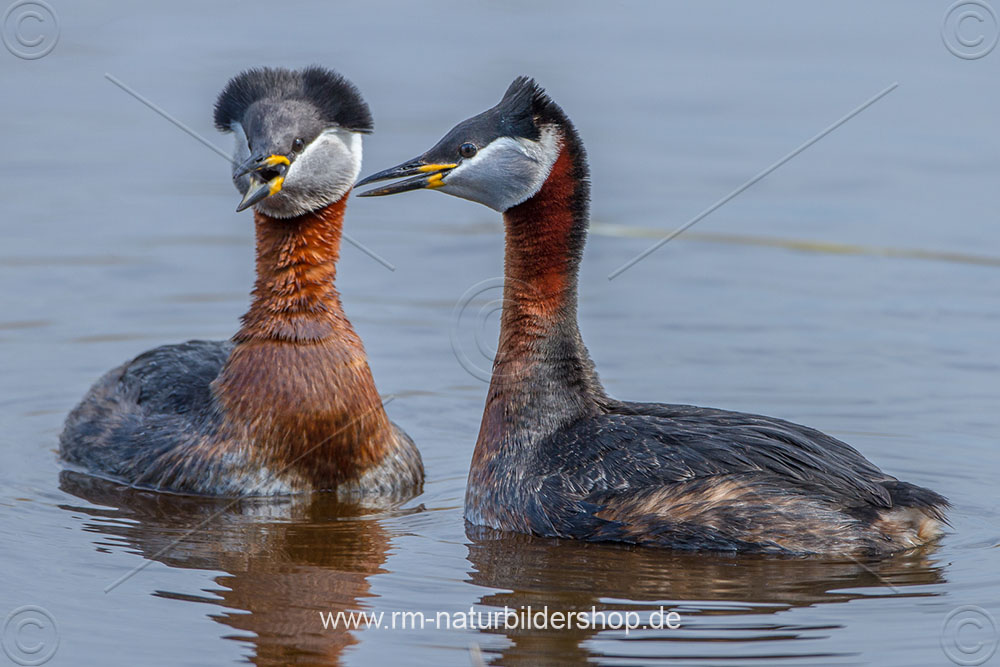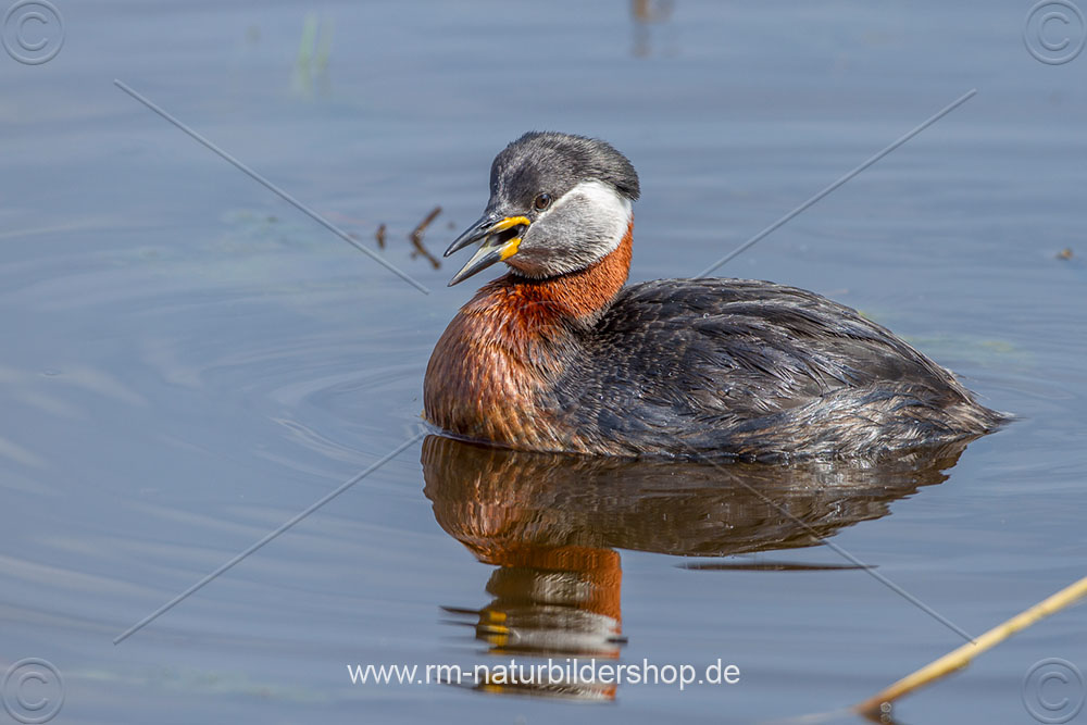 Rothalstaucher (Podiceps grisegena) mit Frosch als Beute