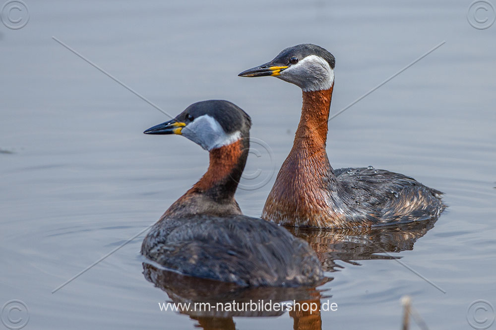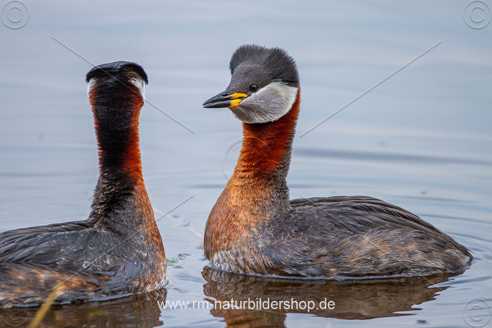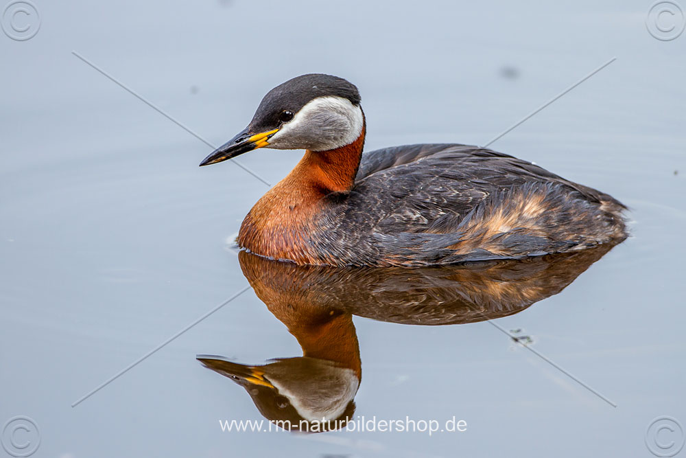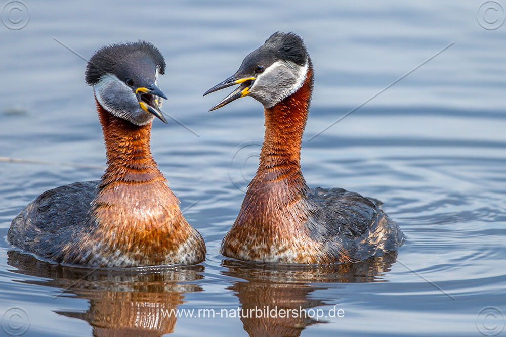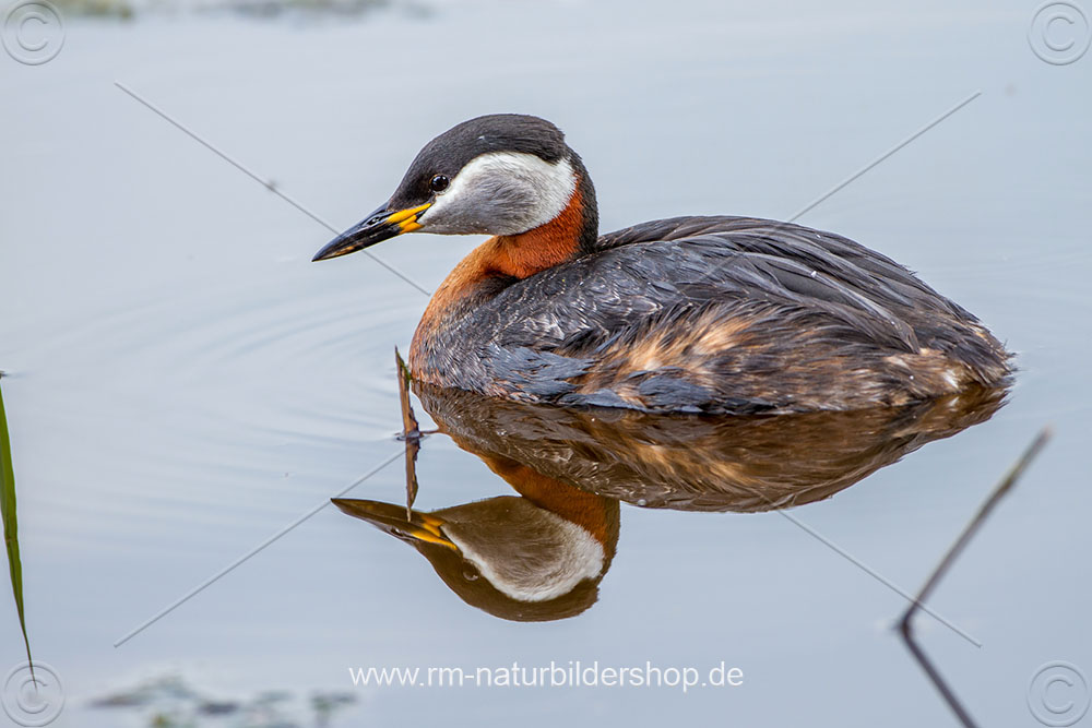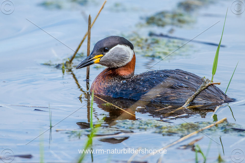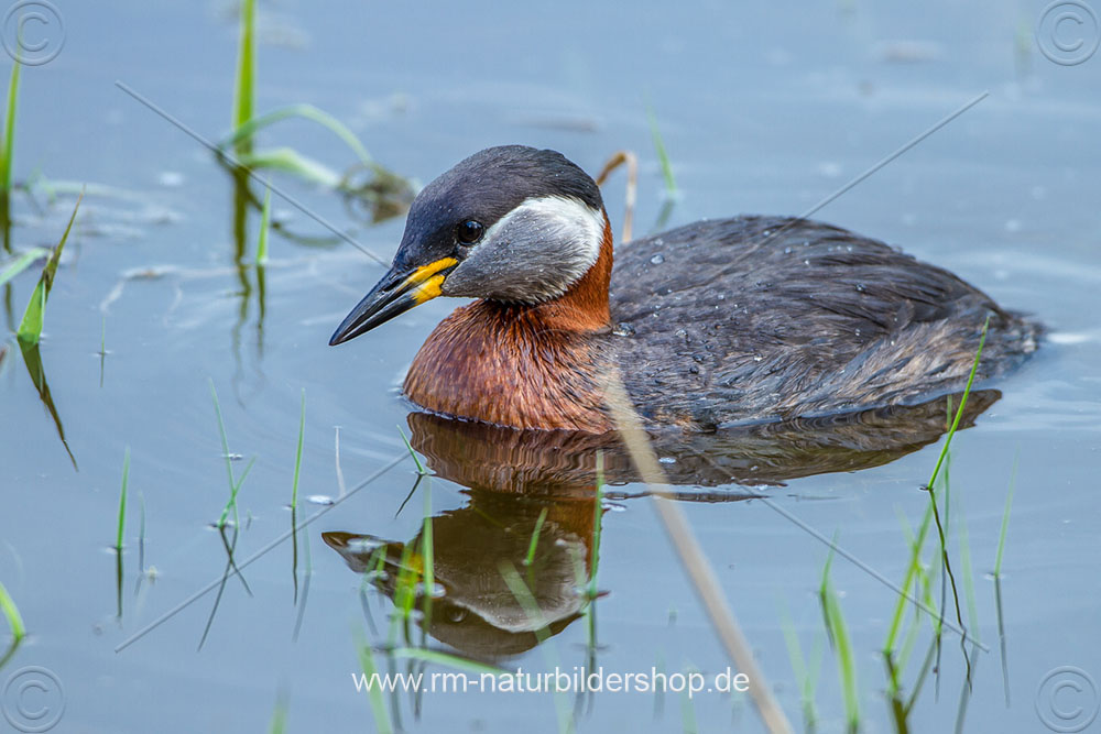 Rothalstaucher (Podiceps grisegena) mit Frosch als Beute